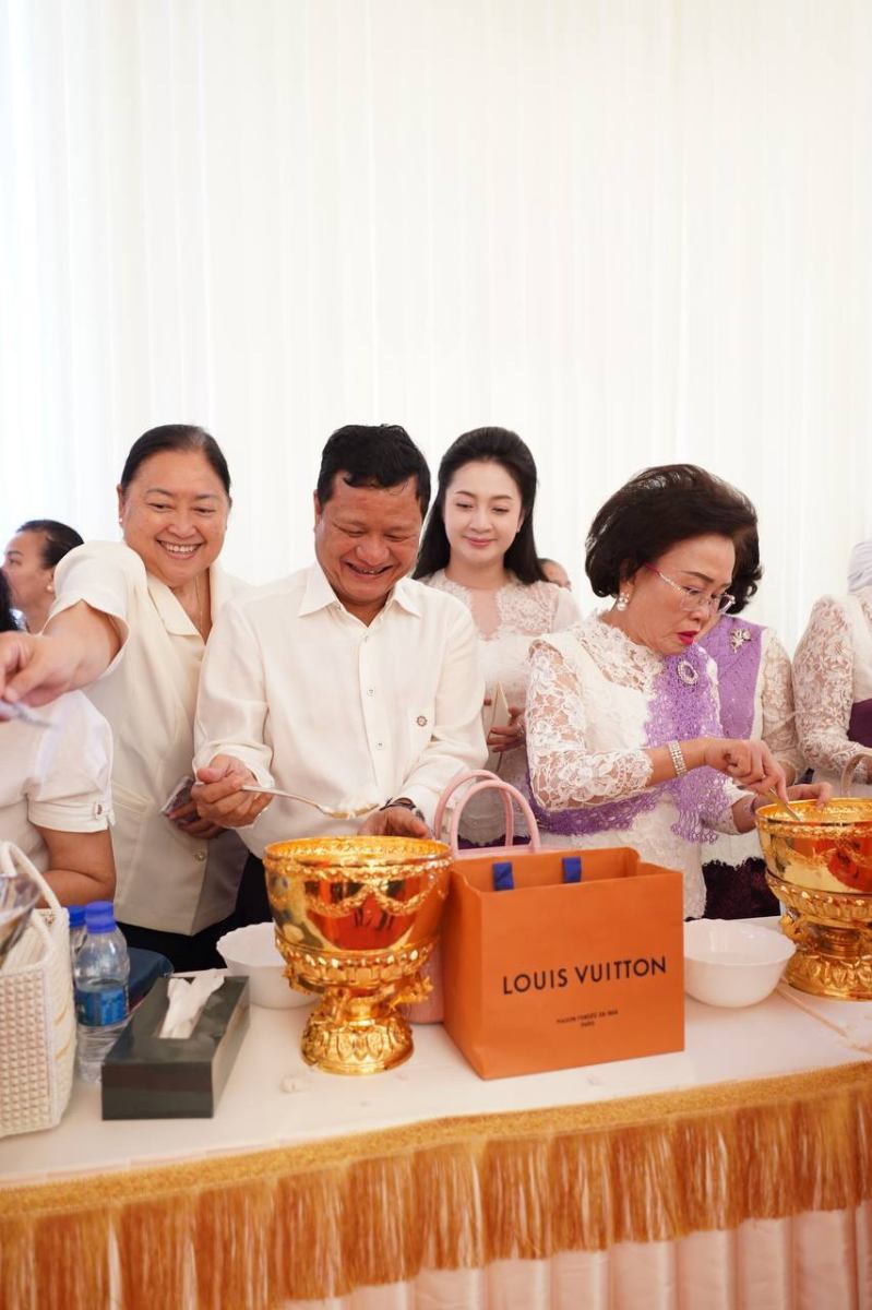 ក្នុងឱកាសពិធីបុណ្យនេះសម្តេចអ្នកឧកញ៉ា ឯកឧត្តមលោកជំទាវអ្នកផ្តើមបុណ្យនិងក្រុមគ្រួសារបានវេរទេយ្យវត្ថុនិងគ្រឿងអត្ថបរិក្ខានិងបច្ច័យថ្វាយនិងប្រគេនសម្តេចព្រះសង្ឃនាយក សម្តេច ព្រះសង្ឃនាយករងនិងព្រះ សម្តេច ព្រះមហាថេរ ទាំង៩ព្រះអង្គប្រកបដោយ សទ្ធាជ្រះថ្លាបំផុត ព្រមទាំងអញ្ជើ្ញរាប់ព្រះសង្ឃ៦៩ព្រអង្គជាកិច្ចឧទ្ទិសកុសលផលបុណ្យជូនវិញ្ញាណក្ខន្ធមាតាបិតាបុព្វការីជនដែលបានចែកឋានទៅកាន់ បរលោកខាងមុខហើយនោះដែលរួមមាន៖ វិញ្ញាណក្ខន្ធ មហាឧបាសក លីន គ្រី និងអ្នកឧកញ៉ាព្រឹទ្ធមហា ឧបាសិកាធម្មញ្ញាណវិវឌ្ឍនា ប៊ុន ស៊ាងលី បិតា មាតាបង្កើត សម្តេច កិត្តិព្រឹទ្ធបណ្ឌិត ប៊ុន រ៉ានីហ៊ុនសែនវិញ្ញាណក្ខ័ន អ្នកឧកញ៉ា មហាភក្តី សប្បុរិស ភោគាធិបតី ហ៊ុននាង និងមហាឧបាសិកា ឌីប៉ុក បិតាមាតបង្កើតសម្តេចអគ្គមហាសេនាបតីតេជោហ៊ុនសែន ជាពិសេស ជូនវិញ្ញញាណក្ខន្ធ លោកជំទាវ មហសទ្ធាភិរ័ក្ខធម្មសិរីរត៍ ប៊ុន សុថា ដែលបានចូលមរណកាល អស់រយៈពេលគម្រប់៣ឆ្នាំនាថ្ងៃនេះ រួមទាំងវិញ្ញាណក្ខន្ធញាតិការសាច់សារលោហិតក្នុងសង្សារវដ្តទាំងអស់ អញ្ជើញមកទទួលយក មនុញ្ញផល ដែល សម្តេច,អ្នកឧកញ៉ា,ឯកឧត្តម,លោកជំទាវ លោក លោកស្រី ឧទ្ទិសជូន ក្នុងពេលនេះ និងបានសោយសុខក្នុងឋានដ៍ ខ្ពង់ខ្ពស់និងសុគតិភពកុំបីឃ្លាងឃ្លាតឡើយ។
