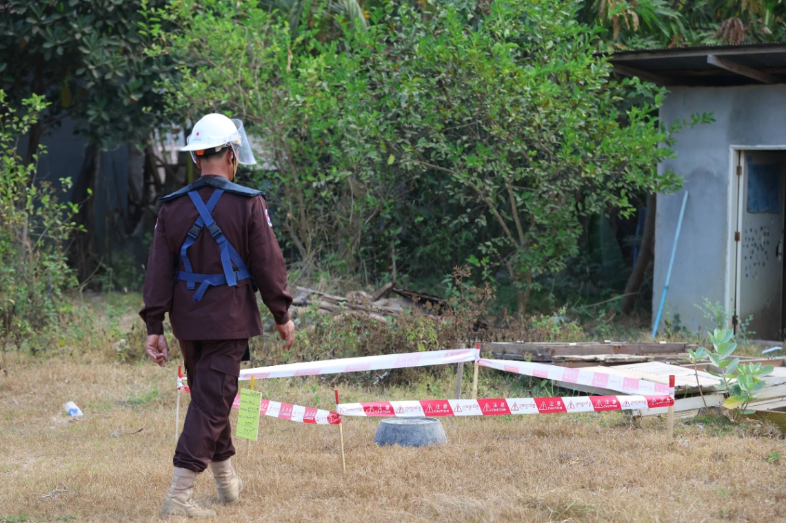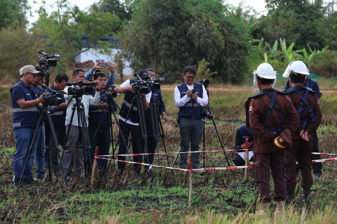 លោកឧត្តមសេនីយ៍ត្រី នេត រដ្ឋា ប្រធានកងឯកភាពកំចាត់មីនទី១ នៃមជ្ឈមណ្ឌលសកម្មភាពកំចាត់មីនកម្ពុជា (CMAC) ធ្វើបទបង្ហាញទីតាំងរងផលប៉ះពាល់ដោយសារទម្ងន់គ្រាប់ផ្លោង និងគ្រាប់ទម្លាក់ពីយន្តហោះ រួមទាំងគ្រាប់បែកចង្កោមរបស់យោធាថៃ មកលើតំបន់ស៉ីវិលកម្ពុជា ស្ថិតនៅស្រុកអូរជ្រៅ ខេត្តបន្ទាយមានជ័យ នារសៀលថ្ងៃទី០៤ ខែកុម្ភៈ ឆ្នាំ២០២៦។