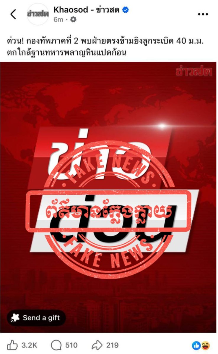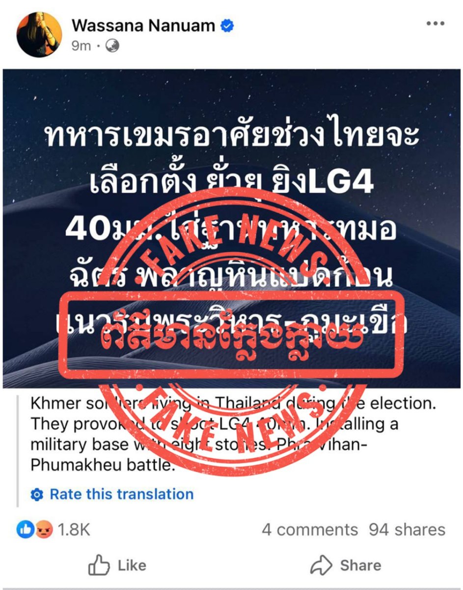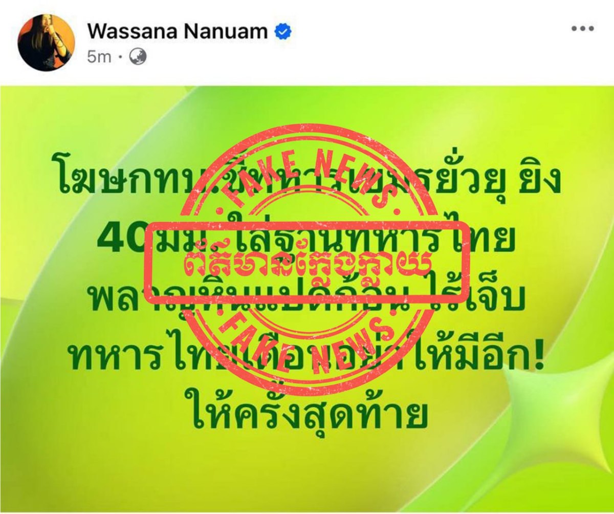 ជាមួយគ្នានេះ ក្រសួងការពារជាតិ បានអំពាវនាវដល់សាធារណជន និងអ្នកសារព័ត៌មានទាំងអស់ សូមកុំចែករំលែកនូវព័ត៌មានក្លែងក្លាយដែលបានផ្សព្វផ្សាយដោយសារព័ត៌មានថៃខាងលើ ដោយតាមដាន និងទទួលយកតែព័ត៌មានដែលមានប្រភពច្បាស់លាស់ ត្រឹមត្រូវ និងជឿទុកចិត្តបាន ជាពិសេសការផ្តល់ជូនព័ត៌មានដោយរាជរដ្ឋាភិបាល ទំព័រផ្លូវការរបស់ថ្នាក់ដឹកនាំ ក្រសួង និងអង្គភាពពាក់ព័ន្ធរបស់យើង៕
