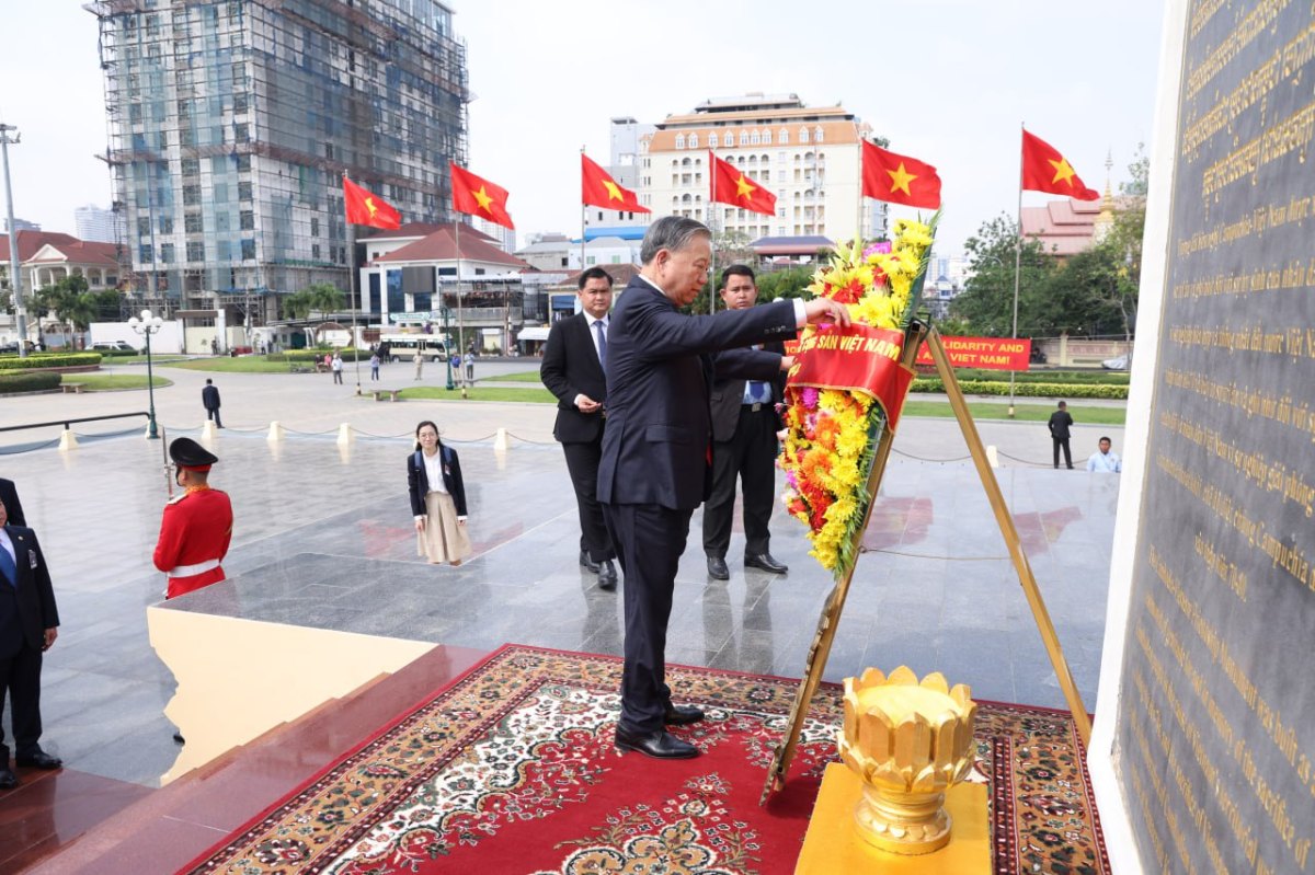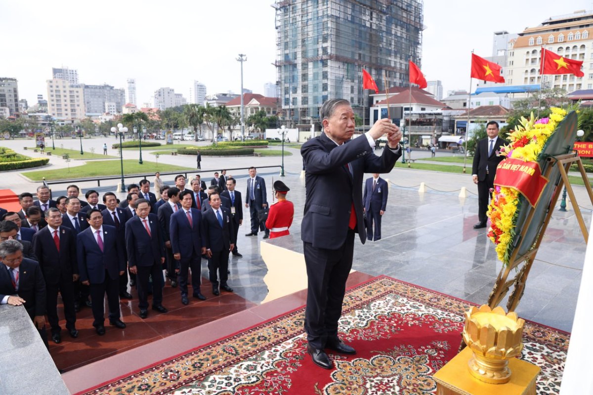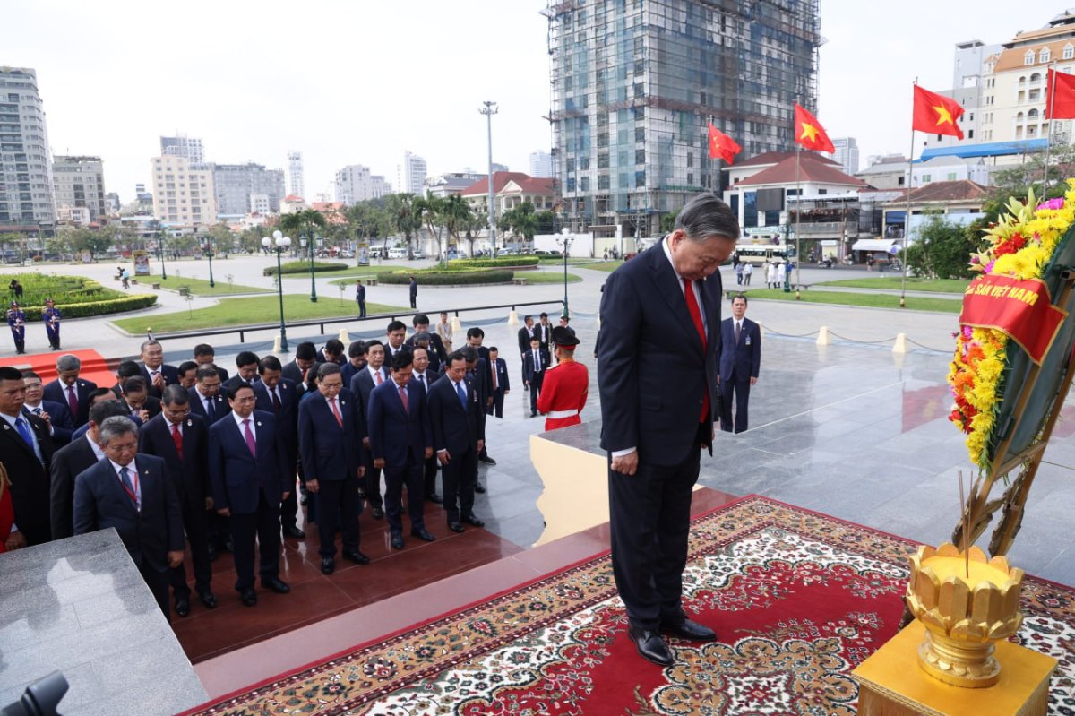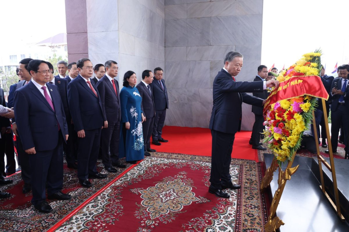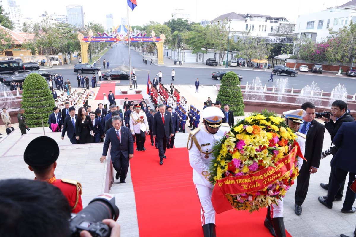 បន្ទាប់ពីអញ្ជើញមកដល់ប្រទេសកម្ពុជា ឯកឧត្តម តូ ឡឹម អគ្គលេខាធិការបក្សកុម្មុយនីស្តវៀតណាម និងគណៈប្រតិភូ បានអញ្ជើញដាក់កម្រងផ្កាគោរពវិញ្ញាណក្ខន្ធនៅវិមានឯករាជ្យ, ដាក់កម្រងផ្កាគោរពព្រះវិញ្ញាណក្ខន្ធនៅមណ្ឌបព្រះបរមរូប សម្តេចព្រះបរមរតនកោដ្ឋ នរោត្តម សីហនុ និងដាក់កម្រងផ្កាគោរពវិញ្ញាណក្ខន្ធ នៅស្តូបមិត្តភាពកម្ពុជា-វៀតណាម។