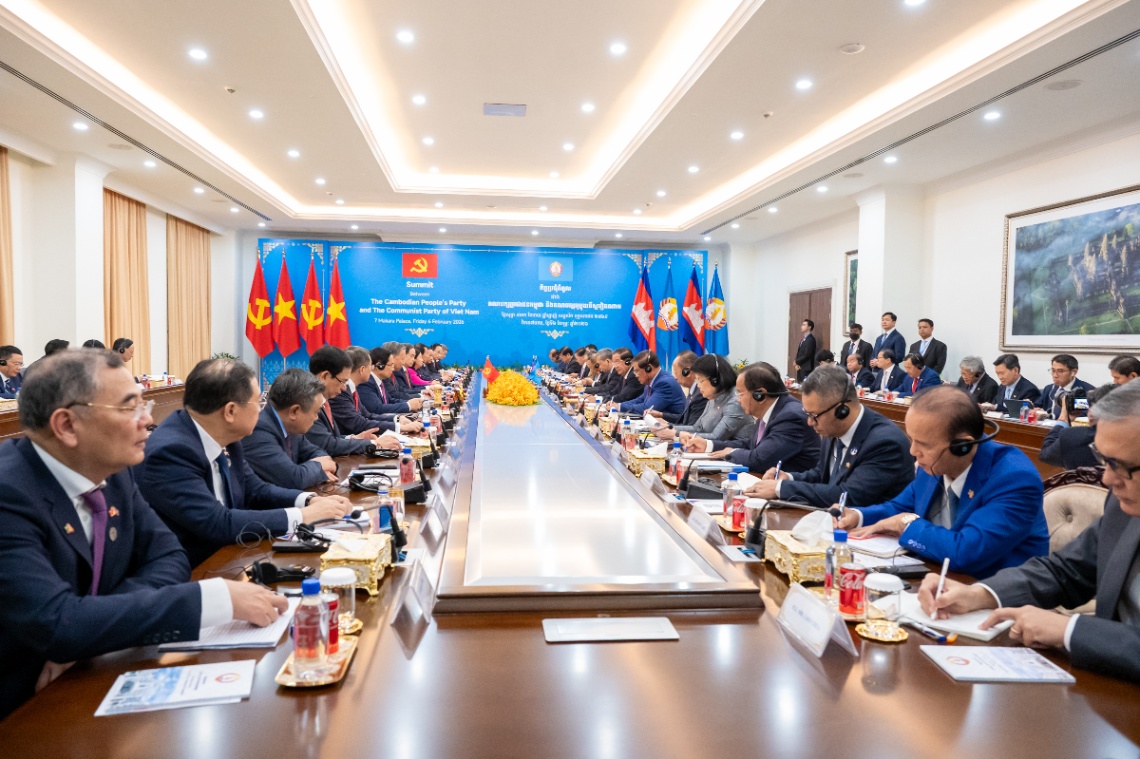 សម្តេចអគ្គមហាសេនាបតីតេជោ ហ៊ុន សែន ប្រធានគណបក្សប្រជាជនកម្ពុជា ឯកឧត្តម តូ ឡឹម អគ្គលេខាធិការបក្សកុម្មុនិស្ត វៀតណាម និងឯកឧត្តមថងលុន ស៊ីសុលីត អគ្គលេខាធិការនៃគណៈកម្មាធិការមជ្ឈិមបក្សប្រជាជនបដិវត្តន៍ឡាវ បានប្តេជ្ញារួមគ្នាថែរក្សាការពារសន្តិសុខ និងសន្តិភាពនៅតាមព្រំដែនរួមគ្នាឲ្យកាន់តែល្អបន្ថែម ទៀតរួមទាំងខិតខំធ្វើយ៉ាងណាជំរុញពាណិជ្ជកម្មរួមគ្នាឲ្យកាន់តែរីកចម្រើនបន្ថែមទៀតផងដែរ ដើម្បីផលប្រយោជន៍រួមរបស់ប្រជាជនទាំងអស់គ្នា។ នេះបើតាមការបញ្ជាក់ពីឯកឧត្តម ជា ធីរិទ្ធ អ្នកនាំពាក្យគណ បក្សប្រជាជនកម្ពុជា។