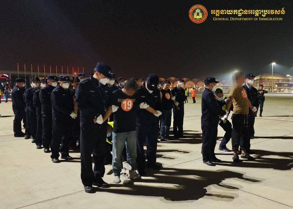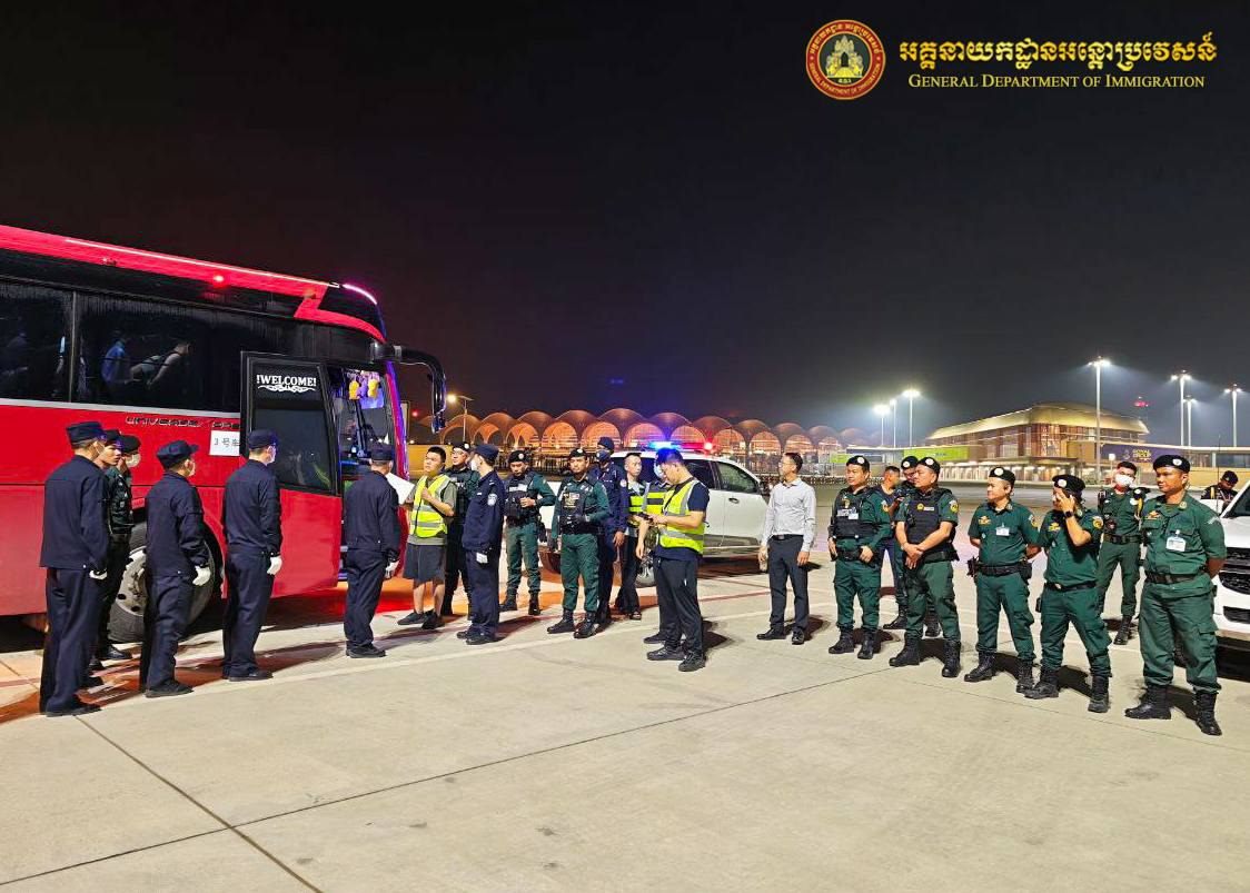 នៅថ្ងៃទី៨ ខែកុម្ភៈ ឆ្នាំ២០២៦ អនុវត្តតាមអនុសាសន៍ដ៏ខ្ពង់ខ្ពស់ របស់ឯកឧត្តមអភិសន្តិបណ្ឌិត ឧបនាយករដ្ឋមន្ត្រី រដ្ឋមន្ត្រីក្រសួងមហាផ្ទៃ, ឯកឧត្តម ឧត្តមសេនីយ៍ឯក សុខ វាសនា អគ្គនាយកអន្តោប្រវេសន៍បានណែនាំឱ្យនាយកដ្ឋានស៊ើបអង្កេត និងអនុវត្តនីតិវិធី សហាការជាមួយស្ថានទូតចិន បន្តធ្វើការបណ្តេញជនជាតិចិនសរុបចំនួន ៣១២នាក់ (ស្រី០នាក់) ពាក់ព័ន្ធករណីឆបោកតាមប្រព័ន្ធអនឡាញ (Online Scams) ត្រូវបានបណ្ដេញចេញតាមរយៈយន្តហោះពិសេស នៅប៉ុស្តិ៍នគរបាលច្រកទ្វារអាកាសអន្តរជាតិតេជោ។