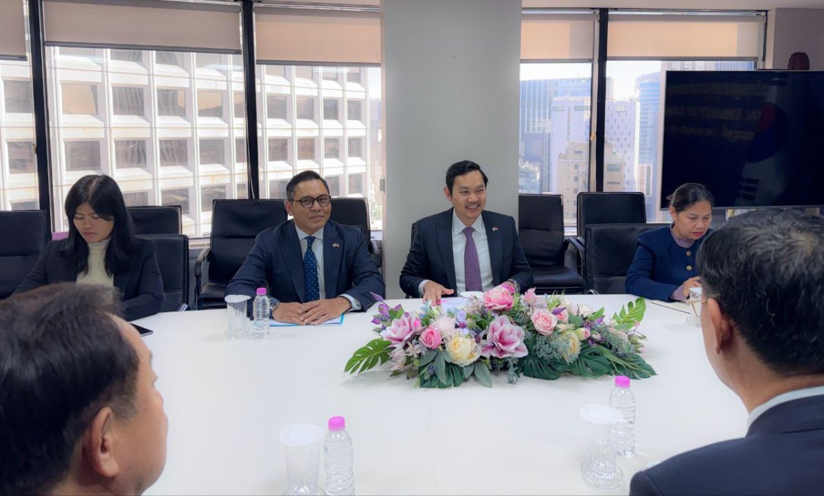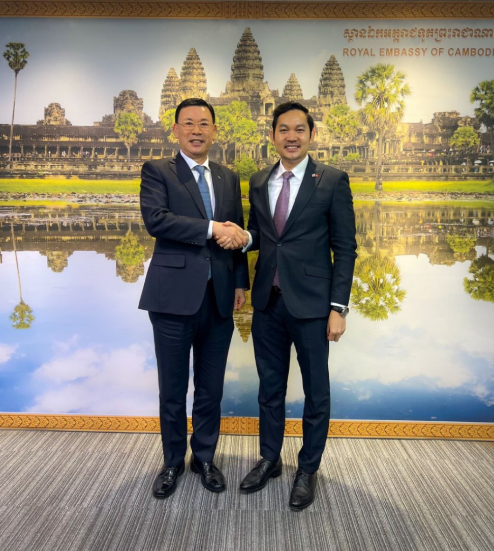 ឯកឧត្តម ឃួន ផុនរតនៈ ឯកអគ្គរាជទូតកម្ពុជាប្រចាំសាធារណរដ្ឋកូរ៉េ បានថ្លែងថា នៅថ្ងៃទី៩ ខែកុម្ភៈ ឆ្នាំ២០២៦ ឯកឧត្តមបានទទួលជួបសម្តែងការគួរសម និងពិភាក្សាការងារជាមួយលោក PARK JOO BONG ប្រធានក្រុមប្រឹក្សាភិបាលក្រុមហ៊ុន Daejoo KC នៅស្ថានទូតកម្ពុជាក្នុងទីក្រុងសេអ៊ូល ។