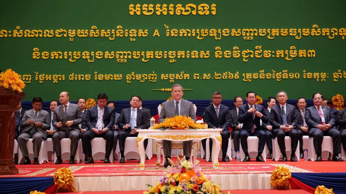 នៅព្រឹកថ្ងៃទី១០ ខែកុម្ភៈ នេះ ខណៈអញ្ជើញជាអធិបតីដ៏ខ្ពង់ខ្ពស់ក្នុងពិធីសំណេះសំណាលជាមួយសិស្សនិទ្ទេសA នៃការប្រឡងសញ្ញាបត្រមធ្យមសិក្សាទុតិយភូមិ និងការប្រឡងសញ្ញាបត្របច្ចេកទេសនិងវិជ្ជាជីវៈកម្រិត៣ កាលពីខែ កក្កដា និងសីហា ឆ្នាំ២០២៥ នោះ សម្តេចធិបតី ហ៊ុន ម៉ាណែត បានថ្លែងបញ្ជាក់ថា លទ្ធផលដែលសម្រេចបានលើវិ ស័យអប់រំដ៏ល្អប្រសើរ ក៏អាស្រ័យដោយការដឹកនាំ និងយកចិត្តទុកដាក់បង្ហាត់បង្រៀនរបស់លោកគ្រូ អ្នកគ្រូ និងការចូល រួមរបស់មាតា បិតា អាណាព្យាបាល ហើយសម្តេចក៏បានថ្លែងអំណរគុណដល់ក្រសួង ស្ថាប័ន ពាក់ព័ន្ធ ដៃគូអភិវឌ្ឍ និង ស.ស.យ.ក ដែលបានចូលរួមយ៉ាងសកម្មក្នុងការអប់រំ បណ្តុះបណ្តាលដល់យុវជន។