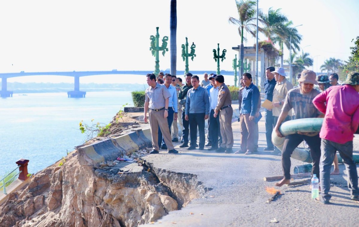 កំពង់ចាម៖ នៅព្រឹកថ្ងៃទី១០ ខែកុម្ភៈ ឆ្នាំ២០២៦នេះ ឯកឧត្តម អ៊ុន ចាន់ដា អភិបាលនៃគណៈអភិបាលខេត្តកំពង់ចាម បានដឹកនាំក្រុមការងារខេត្ត អមដំណើរ ឯកឧត្តម ថោ ជេដ្ឋា រដ្ឋមន្ត្រីក្រសួងធនធានទឹកនិងឧតុនិយម អអញ្ជើញចុះពិនិត្យលក្ខណៈបច្ចេកទេស ក្នុងការទប់ស្កាត់បណ្ដោះអាសន្ន ចំពោះការបាក់ច្រាំងស្រុតទន្លេមេគង្គ ស្ថិតនៅក្នុងក្រុងកំពង់ចាម។