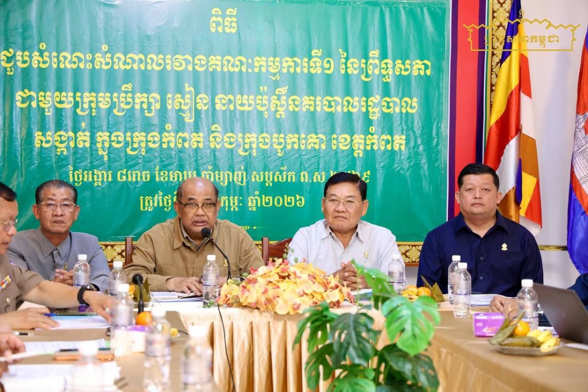 នៅព្រឹកថ្ងៃទី១០ ខែកុម្ភៈ ឆ្នាំ២០២៦ គណៈប្រតិភូគណៈកម្មការសិទ្ធិមនុស្ស ទទួលពាក្យបណ្តឹង និងអង្កេត និងអធិការកិច្ច នៃព្រឹទ្ធសភា (គណៈកម្មការទី១) ដឹកនាំដោយឯកឧត្តម ងី ច័ន្ទ្រផល ប្រធានគណៈកម្មការទី១ព្រឹទ្ធសភា អមដំណើរដោយតំណាងគណៈកម្មាធិការសិទ្ធិមនុស្សកម្ពុជា និងក្រុមមេធាវីស្ម័គ្រចិត្តសម្តេចតេជោសែនប្រចាំខេត្តកែប និងអង្គការសង្គមស៉ីវិលក្នុងក្រុង បានអញ្ជើញជួបពិភាក្សាការងារជាមួយនឹងក្រុមប្រឹក្សាសង្កាត់ ស្មៀន នាយប៉ុស្តិ៍នគរបាលរដ្ឋបាល ក្រុងកំពត និងក្រុងបូកគោ ខេត្តកំពត ដើម្បីស្វែងយល់ និងប្រមូលព័ត៌មានអំពីការអនុវត្តការងារ និងបញ្ហាប្រឈមនានា នៅក្នុងសង្កាត់ ក្នុងក្រុងទាំងពីរ។