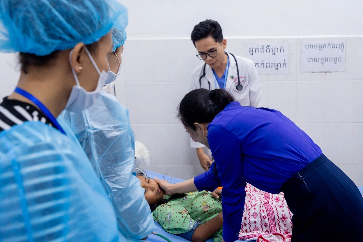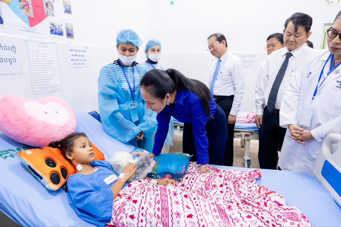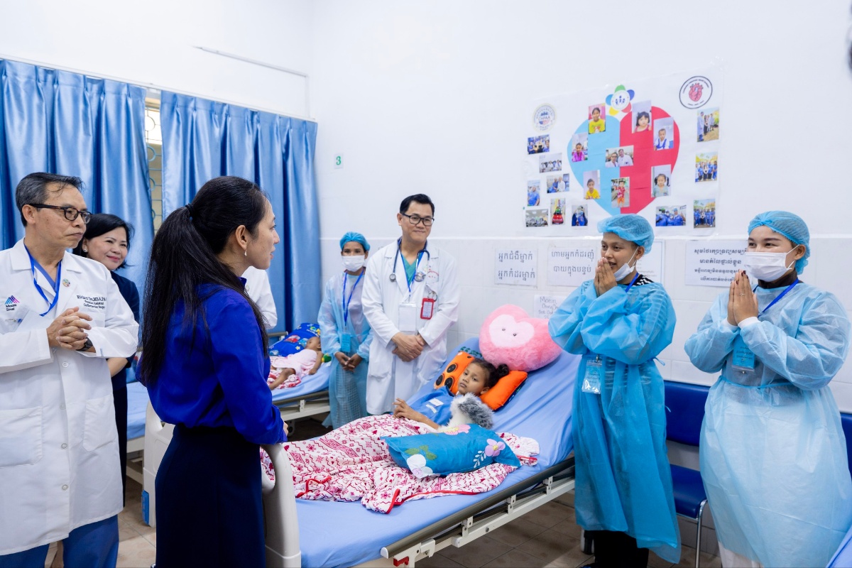 ឆ្លៀតក្នុងវេលានេះ លោកជំទាវបណ្ឌិត បានអញ្ជើញសួរសុខទុក្ខកុមារដែលកំពុងសម្រាកព្យាបាលជំងឺ ដោយ លោកជំទាវបណ្ឌិត បានភ្ជាប់មកជាមួយប្រសាសន៍សួរសុខទុក្ខ និងជូនពរដ៏ខ្ពង់ខ្ពស់របស់ សម្តេចអគ្គមហាសេនាបតីតេជោ ហ៊ុន សែន សម្តេចកិត្តិព្រឹទ្ធបណ្ឌិត ប៊ុន រ៉ានី ហ៊ុនសែន ព្រមទាំង សម្តេចមហាបវរធិបតី ហ៊ុន ម៉ាណែត ផងដែរ។ លោកជំទាវបណ្ឌិត ថែមទាំងបានជួបសំណេះសំណាលជាមួយក្រុមគ្រូពេទ្យ គិលានុបដ្ឋាក បុគ្គលិកមន្ទីរពេទ្យ រួមទាំងក្រុមគ្រូពេទ្យស្ម័គ្រចិត្តរបស់សមាគមសុខាភិបាលខ្មែរនៅអាមេរិក (CHPAA) ដែលកំពុងបម្រើការក្នុងគម្រោងនេះ។