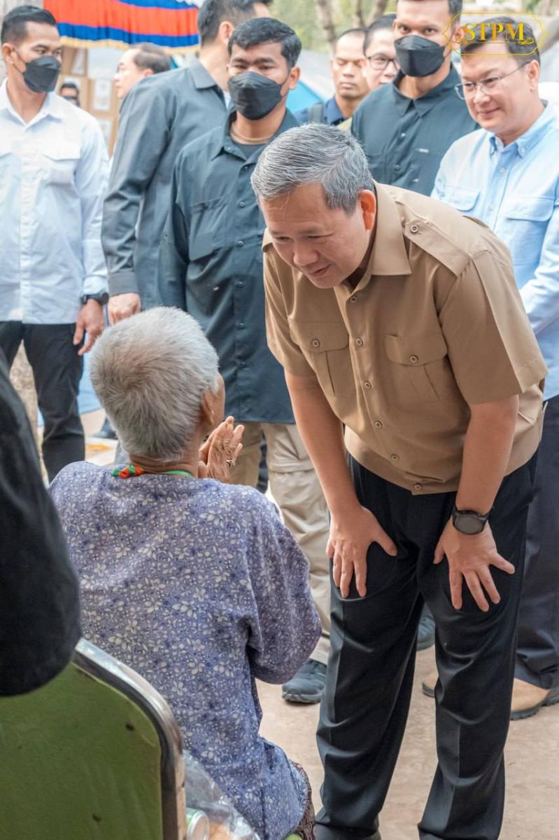 សម្តេចធិបតី ហ៊ុន ម៉ាណែត បន្ដចុះជួបសំណេះសំណាលសាកសួរសុខទុក្ខពលរដ្ឋភៀសសឹកចំនួន​ ​១.២៤៨គ្រួសារ មកពីភូមិព្រៃចាន់ និងភូមិជោគជ័យ
