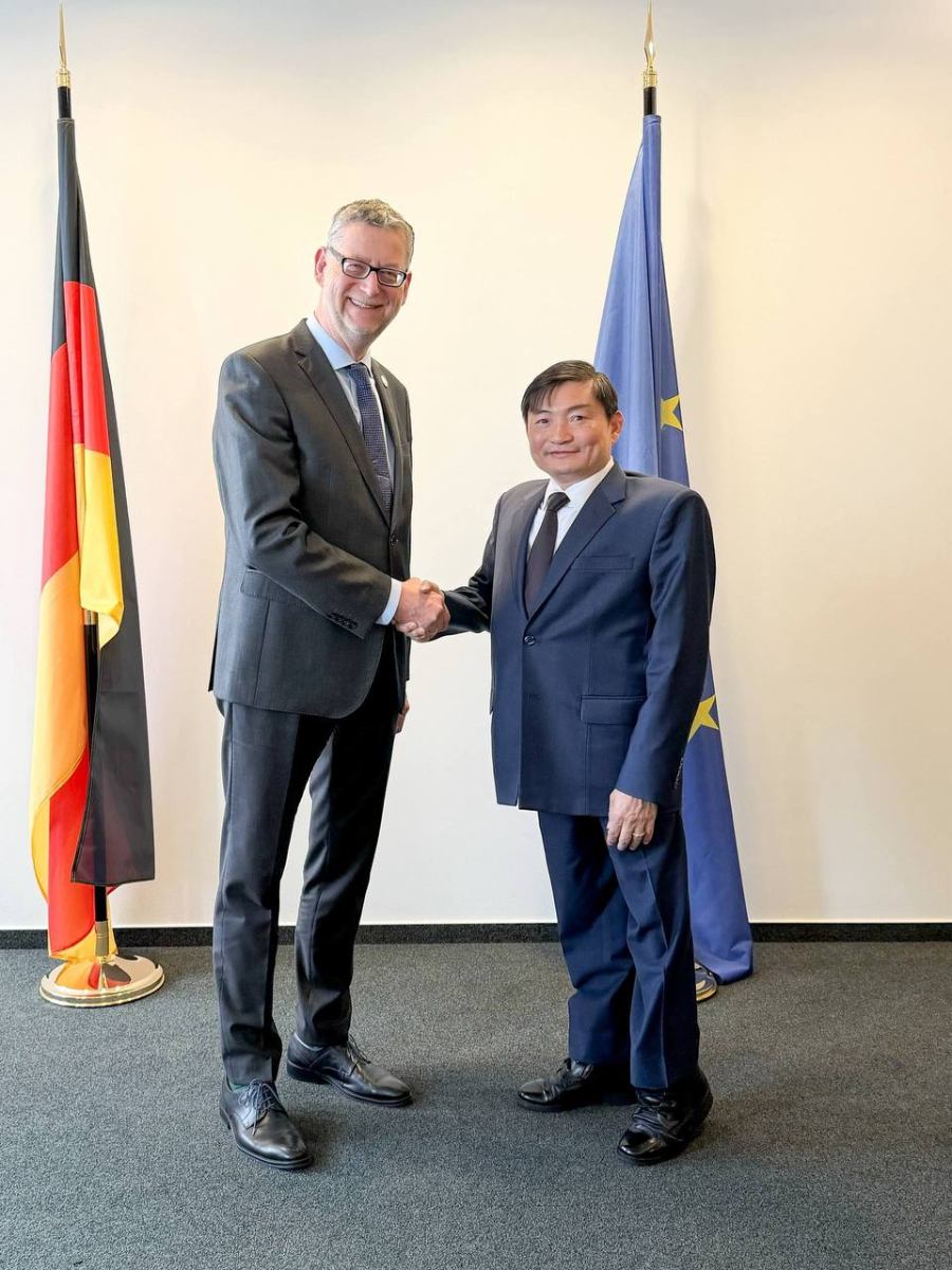 នៅក្នុងឱកាសនោះ ប្រតិភូបានជួបពិភាក្សាការងារជាមួយលោក ថស៍ស្ទីន ហ្សាវហ្វឺ ហ្គាមបល (Thorsten Schafer Gumbel) ប្រធានក្រុមប្រឹក្សាភិបាលនៃទីភ្នាក់ងារសហប្រតិបត្តិការអាល្លឺម៉ង់ (GIZ) ដែលនៅក្នុងជំនួបនោះភាគីទាំងពីរបានរំលឹកពីចំណងមិត្តភាពការទូតដ៏យូរលង់ និងកិច្ចសហប្រតិបត្តិការដ៏ល្អរវាងកម្ពុជា និងអាល្លឺម៉ង់។