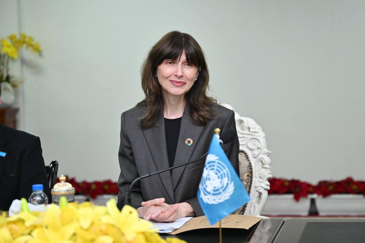 លោកស្រី បានបញ្ជាក់ពីការប្តេជ្ញាចិត្តរបស់អង្គការសហប្រជាជាតិ ក្នុងការបន្តសហការយ៉ាងជិតស្និទ្ធជាមួយរាជរដ្ឋាភិបាលកម្ពុជា ស្របតាមក្របខ័ណ្ឌសហប្រតិបត្តិការអភិវឌ្ឍន៍ប្រកបដោយចីរភាព (២០២៤–២០២៨) ដែលស្របតាមយុទ្ធសាស្ត្របញ្ចកោណដំណាក់កាលទី១ អាទិភាព SDGs ការត្រៀមចាកចេញរបស់កម្ពុជា ពីប្រទេសដែលមានការអភិវឌ្ឍតិចតួច (LDC) នៅឆ្នាំ២០២៩ និងចក្ខុវិស័យកម្ពុជាឆ្នាំ២០៥០។