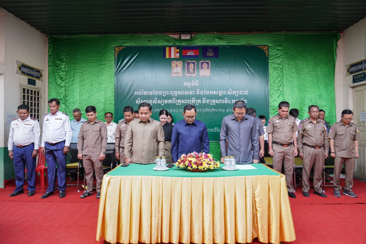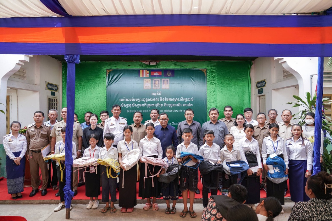 ភ្នំពេញ៖ នៅព្រឹកថ្ងៃអង្គារ ទី២៤ ខែកុម្ភៈ ឆ្នាំ២០២៦ ឯកឧត្តម សោម ចំណាន រដ្ឋលេខាធិការ តំណាងដ៏ខ្ពង់ខ្ពស់របស់ ឯកឧត្តម ហេង សួរ រដ្ឋមន្ត្រីក្រសួងការងារ និងបណ្តុះបណ្តាលវិជ្ជាជីវៈ និងជាប្រធានក្រុមការងាររាជរដ្ឋាភិបាលចុះមូលដ្ឋានខណ្ឌពោធិ៍សែនជ័យ បានអញ្ជើញជាអធិបតីក្នុងពិធីចែកសម្ភារៈសិក្សា និងកម្មវិធីអប់រំតាមបែបព្រះពុទ្ធសាសនា ជូនដល់សិស្សានុសិស្សមកពីគ្រួសារក្រីក្រ និងគ្រួសារវីរកងទ័ពចំនួន ៣២០នាក់។