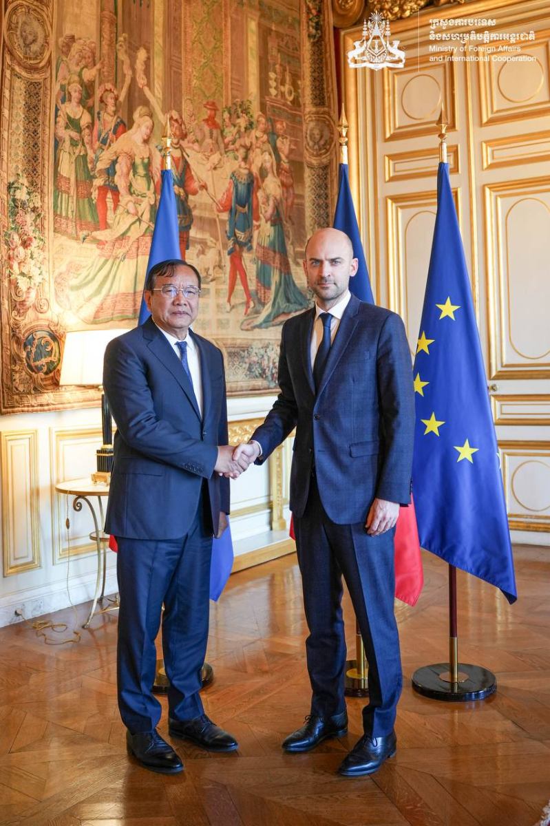 ឯកឧត្តមឧបនាយករដ្ឋមន្ត្រី ប្រាក់ សុខុន បានថ្លែអអំណរគុណបែបនេះ ក្នុងឱកាសអញ្ជើញជួបពិភាក្សាការងារទ្វេភាគីជាមួយ ឯកឧត្តម Jean-Noël BARROT រដ្ឋមន្ត្រីនៃក្រសួងអឺរ៉ុប និងការបរទេស នៃសាធារណរដ្ឋបារាំង នៅទីក្រុងប៉ារីស ប្រទេសបារាំង នៅថ្ងៃទី២៥ ខែកុម្ភៈ ឆ្នាំ២០២៦នេះ។