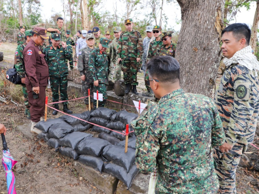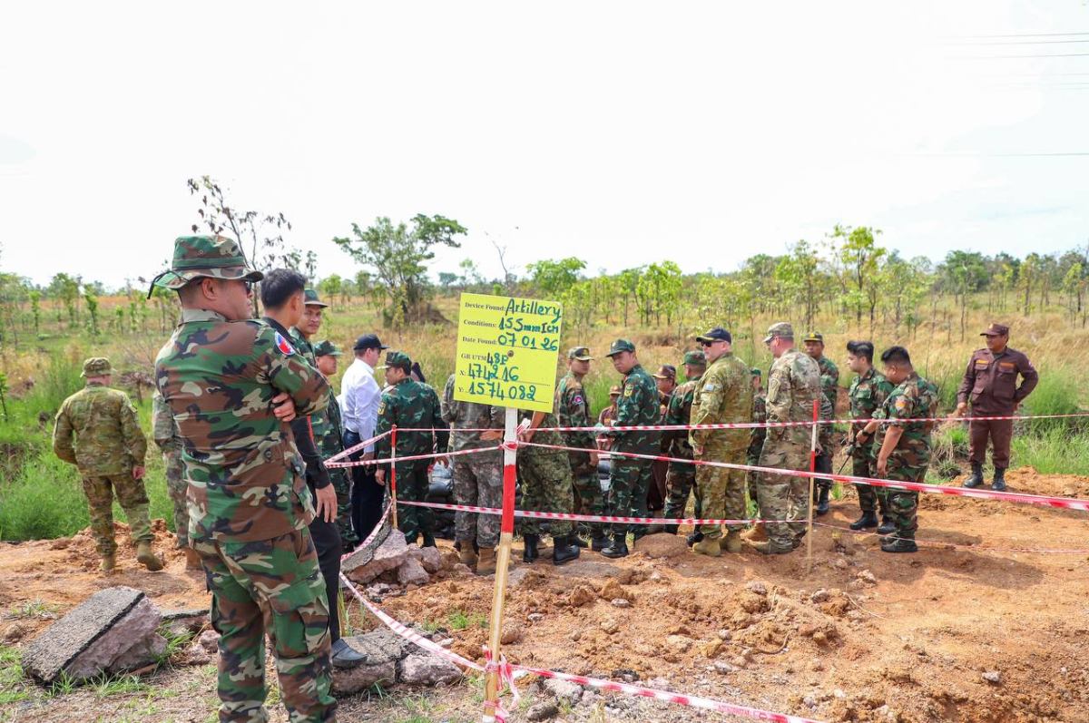 អ្នកនាំពាក្យក្រសួងការពារជាតិ កម្ពុជា បានឱ្យដឹងថា ក្នុងឱកាសនោះ មន្ត្រីមជ្ឈមណ្ឌលសកម្មភាពកំចាត់មីនកម្ពុជា (ស៊ីម៉ាក់) បានធ្វើបទបង្ហាញជូនគណៈប្រតិភូទាំង ១២ប្រទេស អំពីប្រភេទគ្រាប់សំណល់យុទ្ធភណ្ឌមិនទាន់ផ្ទុះ និងប្រភេទគ្រាប់បានប្រើប្រាស់ មានចំនួនសរុប ១២២៣គ្រាប់ ត្រូវបានរកឃើញនៅក្នុងបរិវេណប្រាសាទព្រះវិហារ ដែលជាគ្រាប់របស់យោធាថៃបានប្រើប្រាស់ក្នុងអំឡុងពេលវាយប្រហារមកលើប្រាសាទព្រះវិហារ ជាសម្បត្តិបេតិកភណ្ឌពិភពលោក ដែលជាមរតកវប្បធម៌ប្រវត្តិសាស្រ្តដ៏ថ្លៃថ្លារបស់ប្រជាជនខ្មែរ។