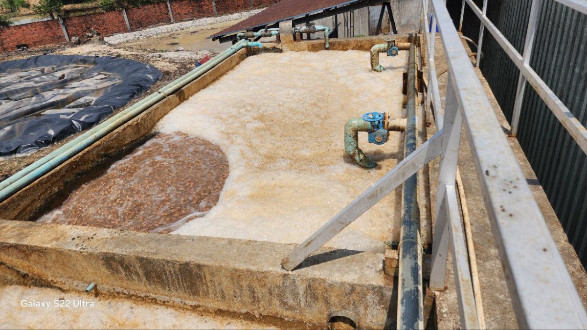 ក្រុមការងារបានរកឃើញ ការរៀបចំប្រព័ន្ធបង្ហូរសំណល់រាវ ដើម្បីចូលទៅក្នុងអាងប្រព្រឹត្តិកម្ម មានលក្ខណៈប្រាស់ចាក ពីក្នុងរបាយការណ៍ EIA ដំបូង ជាហេតុបង្កឲ្យមានការបញ្ចេញក្លិនស្អុយ (ជូរផ្អូម)។ ជាមួយគ្នាក្រុមហ។ុនបាន ដំណើរប្រតិបត្តិការអាងសម្អាត ពុំអនុលោមតាមគោលកាណ៍បច្ចេកទេស និងម្យ៉ាងទៀត សមត្ថភាពអាងសម្អាត មានលក្ខណៈមិនឆ្លើយតបនឹងបរិមាណសំណល់រាវ ដែលបង្កើតមានជាក់ស្តែង ល្មើសនឹងមាត្រា ២៨៧ នៃក្រមបរិស្ថាន និងគ្មានលិខិតអនុញ្ញាតបញ្ចេញសំណល់ល្មើសនឹងមាត្រា ១៧៣ នៃក្រមបរិស្ថាននិងធនធានធម្មជាតិ។ កន្លងមកនេះក្រុមហ៊ុនបានបញ្ចេញសំណល់រាវលើសស្តង់ដារ ល្មើសនឹងមាត្រា ១៥៦ នៃក្រមបរិស្ថាន និងធនធានធម្មជាតិ។