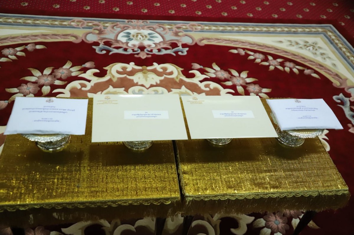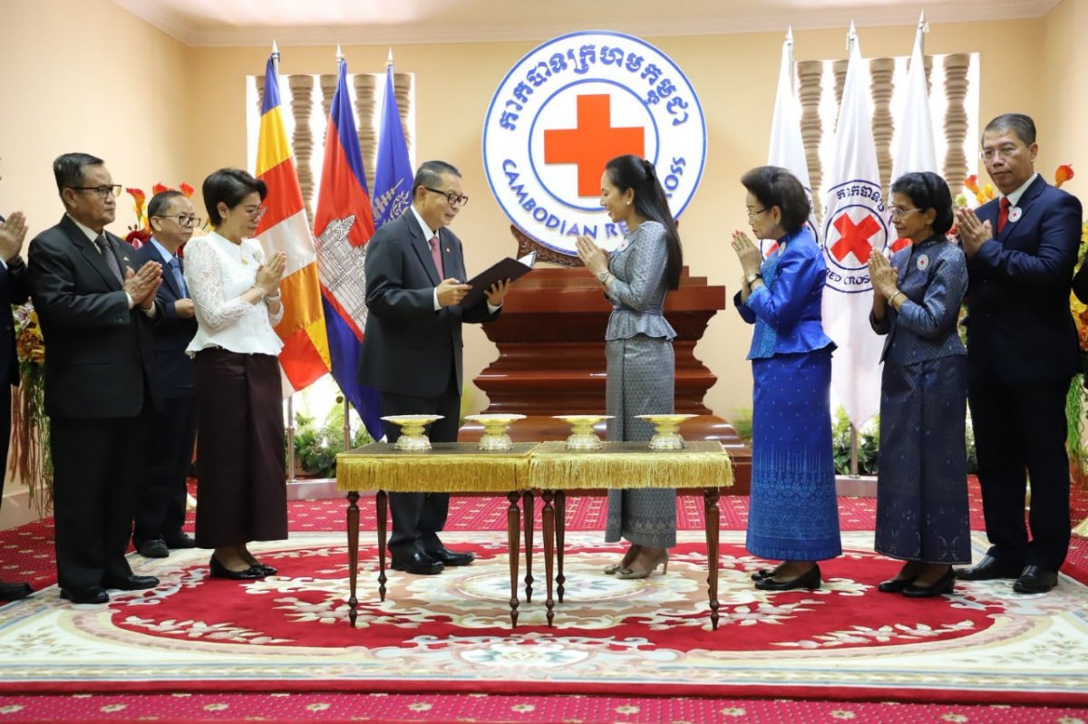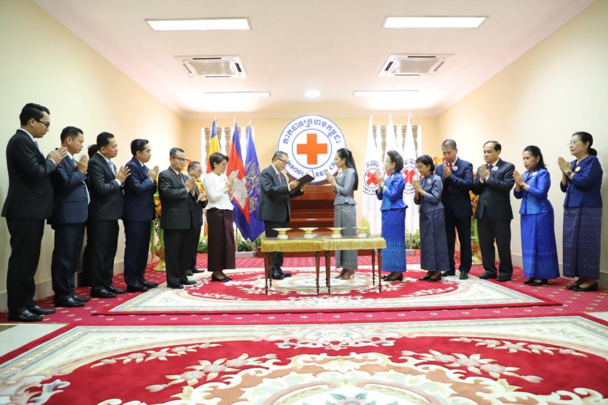 ព្រះរាជទ្រព្យដ៏ឧត្តុង្គឧត្តមខាងលើនេះត្រូវបាន សម្តេចមហាមន្ត្រី គុយ សុផល ឧបនាយករដ្ឋមន្ត្រី និងជារដ្ឋមន្ត្រីក្រសួងព្រះបរមរាជវាំង យកមកប្រគល់ជូនលោកជំទាវបណ្ឌិត ពេជ ចន្ទមុន្នី ហ៊ុនម៉ាណែត អនុប្រធានចិន្ត្រៃយ៍កាកបាទក្រហមកម្ពុជា តំណាងដ៏ខ្ពង់ខ្ពស់ សម្តេចកិត្តិព្រឹទ្ធបណ្ឌិត ប៊ុន រ៉ានី ហ៊ុនសែន ប្រធានកាកបាទក្រហមកម្ពុជា នៅទីស្នាក់ការកណ្តាលកាកបាទក្រហមកម្ពុជា នាព្រឹកថ្ងៃសុក្រ ទី៦ ខែមីនា ឆ្នាំ២០២៦នេះ។