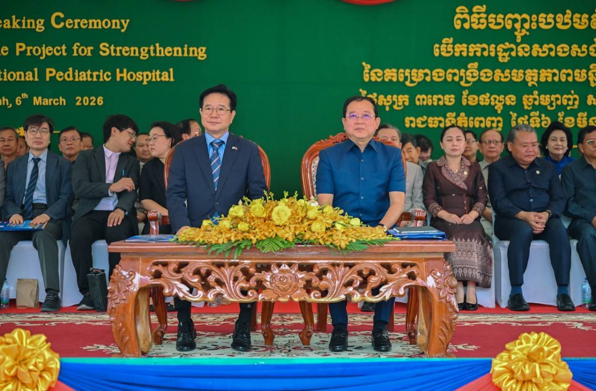 នៅព្រឹកថ្ងៃទី៦ ខែមីនា ឆ្នាំ២០២៦ ឯកឧត្តមសាស្ត្រាចារ្យ ឈាង រ៉ា រដ្ឋមន្ត្រីក្រសួងសុខាភិបាល និងជាតំណាងដ៏ខ្ពង់ខ្ពស់សម្តេចមហាបវរធិបតី ហ៊ុន ម៉ាណែត នាយករដ្ឋមន្រ្តី នៃព្រះរាជាណាចក្រកម្ពុជា រួមជាមួយ ឯកឧត្តម គីម ឆាងយ៉ុង (H.E. Kim Chang-Yong) ឯកអគ្គរដ្ឋទូតវិសាមញ្ញ និងពេញសមត្ថភាព នៃសាធារណរដ្ឋកូរ៉េ ប្រចាំព្រះរាជាណាចក្រកម្ពុជា បានអញ្ជើញជាអធិបតីក្នុងពិធីបញ្ចុះបឋមសិលា បើកការដ្ឋានសាងសង់ អគារមិត្តភាពកម្ពុជា-កូរ៉េ អគារទី២ នៃមន្ទីរពេទ្យកុមារជាតិ។
