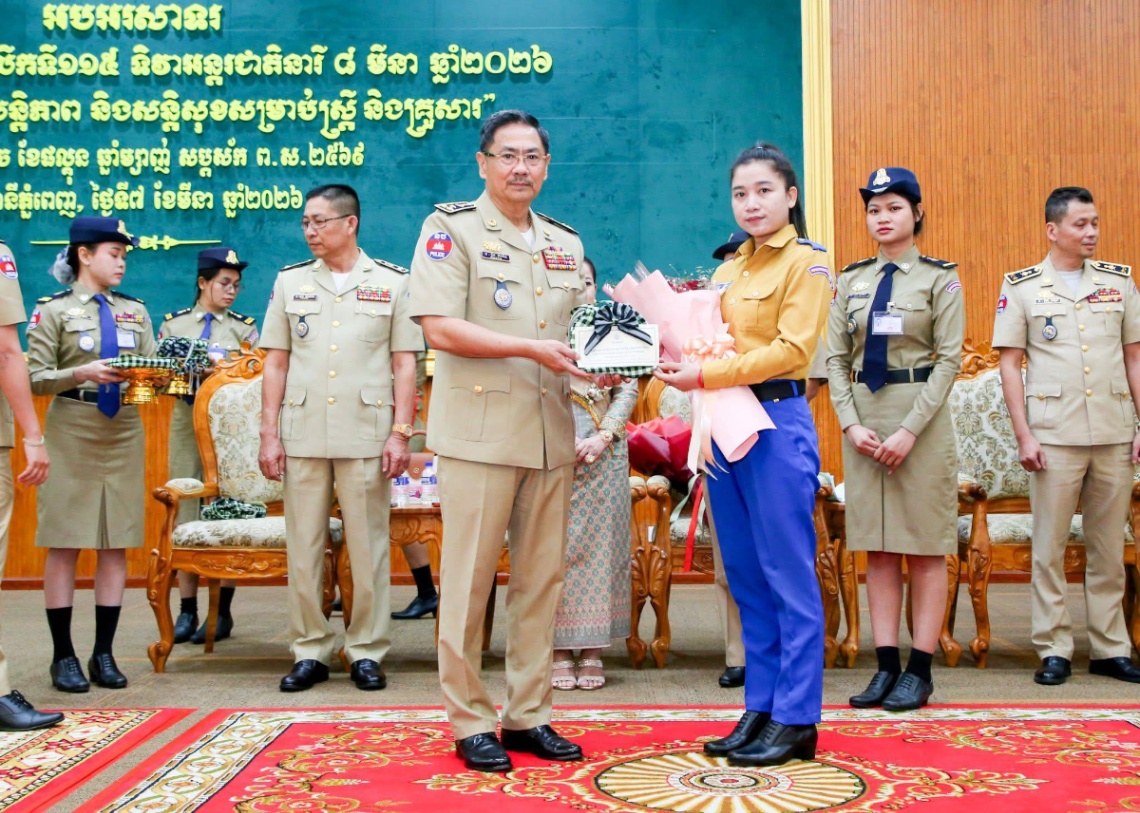នៅរសៀលថ្ងៃទី៧ ខែមីនា ឆ្នាំ២០២៦ ស្នងការដ្ឋាននគរបាលរាជធានីភ្នំពេញ បានរៀបចំពិធីសំណេះសំណាលខួបលើកទី១១៥ ទិវាអន្តរជាតិនារី ០៨ មីនា ឆ្នាំ២០២៦ ក្រោមប្រធានបទ “ សន្តិភាព និងសន្តិសុខសម្រាប់ស្ត្រី និងគ្រួសារ“។