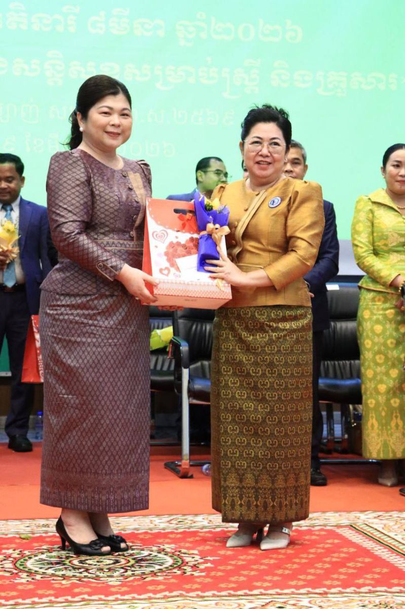 ក្នុងពិធីនោះ ឯកឧត្តមបណ្ឌិតរដ្ឋមន្រ្តី បានលើកឡើងអំពីប្រសាសន៍ដ៏ខ្ពង់ខ្ពស់របស់សម្តេចអគ្គមហាសេនាបតីតេជោ ហ៊ុន សែន ដែលបានថ្លែងកាលពីពេលកន្លងទៅគឺ«ស្ត្រីគឺជាឆ្អឹងខ្នងនៃសេដ្ឋកិច្ច និងសន្តិភាព» ហើយសម្តេចតែងតែការពារតម្លៃស្ត្រីខ្មែរ និងថ្កោលទោសរាល់ការប្រមាថមើលងាយស្ត្រី ជាពិសេសនៅក្នុងបរិបទនៃការការពារសិទ្ធិ និងសេចក្តីថ្លៃថ្នូររបស់ស្រ្តី។ ដោយឡែកសម្តេចមហាបវរធិបតី ហ៊ុន ម៉ាណែត នាយករដ្ឋមន្ត្រី ក៏តែងតែលើកកម្ពស់តម្លៃស្ត្រី ដោយបានអំពាវនាវឱ្យបញ្ឈប់ជាបន្ទាន់នូវទង្វើរើសអើងគ្រប់ទម្រង់ដែលជះឥទ្ធិពលអវិជ្ជមាន ឬធ្វើឱ្យប៉ះពាល់ដល់គុណតម្លៃរបស់ស្ត្រីនៅក្នុងសង្គម តាមរយៈការផ្តល់ការគោរព និងការការពារសិទ្ធិស្ត្រី។ ក្រោមការចង្អុលបង្ហាញ និងតម្រង់ទិសរបស់សម្តេចមហាបវរធិបតី, រាជរដ្ឋាភិបាលបានកំណត់យក«មនុស្ស»ជាអាទិភាពចម្បងក្នុងនោះបញ្ចកោណទី១ ផ្តោតសំខាន់ទៅលើ «ការអភិវឌ្ឍមូលធនមនុស្ស»ដែលគិតគូរទៅលើការលើកកម្ពស់សុខភាព និងសុខុមាលភាព ប្រជាជន និងការពង្រឹងប្រព័ន្ធគាំពារសង្គម។ បញ្ចកោណមុំទី៤.១ ស្តីពី«ការអភិវឌ្ឍប្រកបដោយភាពធន់ ចីរភាព និងបរិយាបន្ន»បានផ្តោតសំខាន់លើការលើកកម្ពស់សមភាពយេនឌ័រ និងបានទប់ស្កាត់ គ្រប់ទម្រង់នៃអំពើហិង្សាទាក់ទងនឹងយេនឌ័រ តាមរយៈការបង្កើនការវិនិយោគលើយេនឌ័រ ការបង្កើនភាពអង់អាចដល់ស្ត្រីលើគ្រប់វិស័យ បង្កលក្ខណៈអំណោយផលដល់ស្ត្រីក្នុងការអនុវត្តសិទ្ធិ ភាពជាអ្នកដឹកនាំ ដើម្បីកាត់បន្ថយអំពើហិង្សា ទាក់ទងនឹងយេនឌ័រ ការរៀបអាពាហ៍ពិពាហ៍នៅវ័យក្មេង ការមានផ្ទៃពោះវ័យជំទង់ ព្រមទាំងលើកកម្ពស់ សុខភាពសាធារណៈ ដូចជាបញ្ហាកង្វះអាហារូបត្ថម្ភនារី និងកុមារជាដើម។