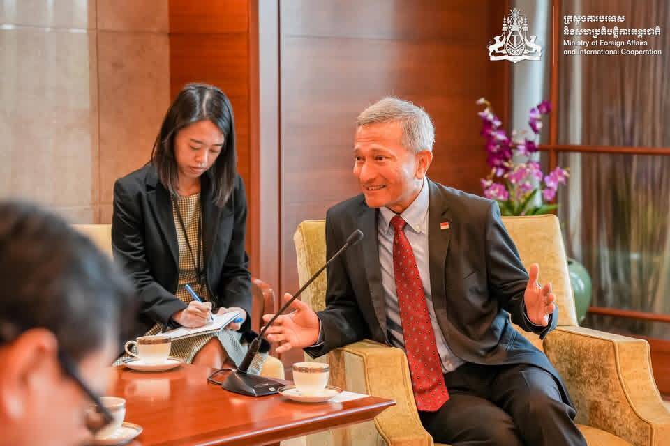 ប្រមុខការទូតកកម្ពុជា ឯកឧត្តមឧបនាយករដ្ឋមន្ត្រី ប្រាក់ សុខុន និងឯកឧត្តមបណ្ឌិត វីវៀន បាឡាគ្រីស្សណាន់ រដ្ឋមន្ត្រីការបរទេសសិង្ហបុរី បានពិភាក្សាយ៉ាងស៊ីជម្រៅលើវឌ្ឍនភាពថ្មីៗនៃស្ថានភាពព្រំដែនកម្ពុជា-ថៃ និងបានផ្លាស់ប្តូរទស្សនៈអំពីបញ្ហាតំបន់ និងអន្តរជាតិដែលជាកង្វល់រួមផងដែរ។ ជំនួបពិភាក្សារវាងប្រមុខការទូតទាំងពីរ បានធ្វើឡើងអំឡុងពេលនៃការបំពេញទស្សនកិច្ចផ្លូវការរបស់ឯកឧត្តមឧបនាយករដ្ឋមន្ត្រី ប្រាក់ សុខុន នៅសាធារណរដ្ឋសិង្ហបុរី នាថ្ងៃទី១១ ខែមីនា ឆ្នាំ២០២៦។