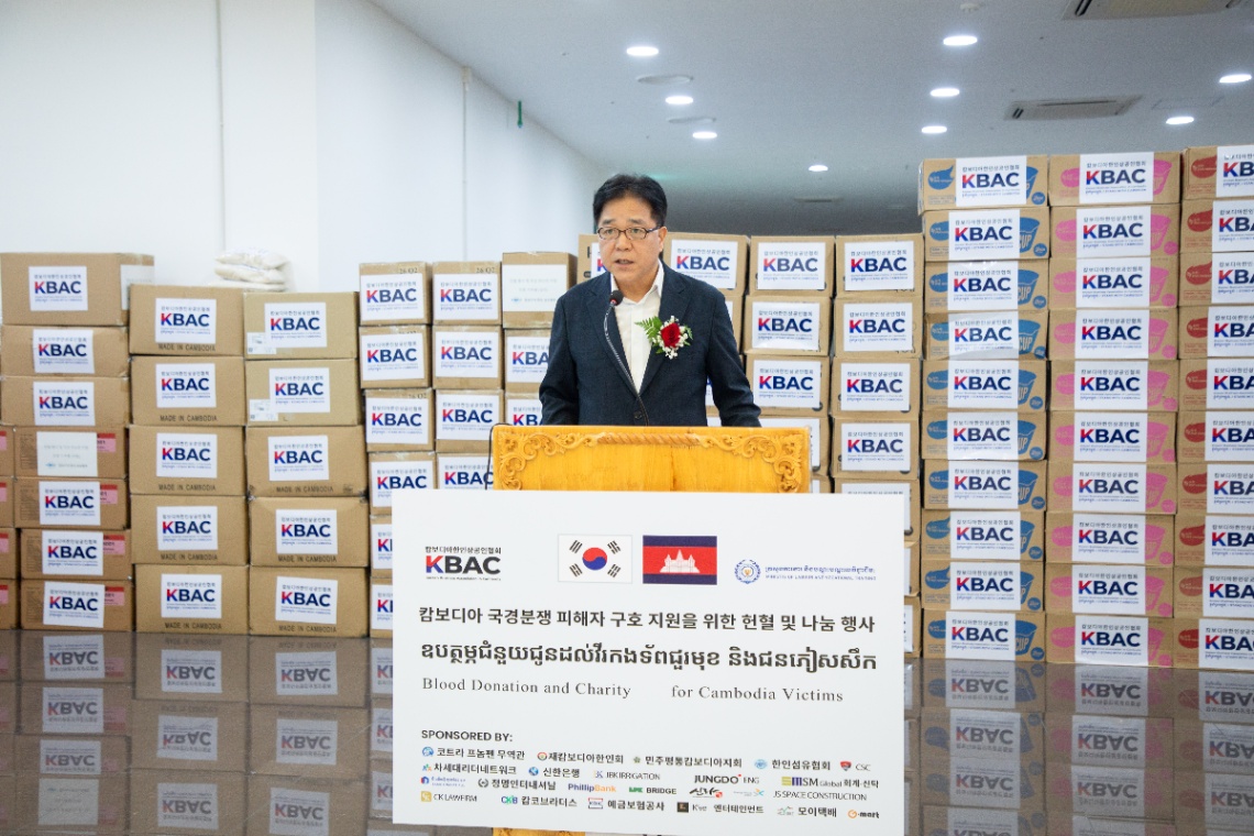 នាឱកាសនោះ ឯកឧត្តមរដ្ឋមន្រ្តី បានមានប្រសាសន៍ថា បើទោះបីជាបទឈប់បាញ់ រវាងកម្ពុជា និងថៃ បានចូលជាធរមានយ៉ាងណាក៏ដោយ ក៏នៅមានជនភៀសសឹករាប់ម៉ឺននាក់ ដែលរួមមានទាំងស្រ្តី និងកុមារផងដែរ នៅពុំទាន់អាចវិលទៅលំនៅឋានវិញនៅឡើយ។ ហេតុនេះ ការឧបត្ថម្ភជាថវិកា ជាសម្ភារ និងគ្រឿងឧបភោគបរិភោគជូនដល់ជនរងគ្រោះពីជម្លោះព្រំដែន ជាពិសេសការបរិច្ចាគឈាមនាពេលនេះរបស់សមាគម គឺមិនទាន់យឺតពេលនោះទេ គឺចំពេលតែម្តង ដែលនេះបានបង្ហាញយ៉ាងច្បាស់ពីមនោសញ្ចេតនា ក្តីស្រឡាញ់យ៉ាងជ្រាលជ្រៅ និងការយកចិត្តទុកដាក់ដល់បងប្អូនដែលកំពុងបន្តរងទុក្ខលំបាកពីការឈ្លានពានរបស់យោធាថៃ។ លើសពីនេះ ទឹកចិត្តសប្បុរសនេះ ក៏ជាសាក្សីថ្មីមួយទៀតបញ្ជាក់ថា ការរាប់អានគ្នានៃប្រជាជាតិទាំងពីរពិតជាមានតម្លៃជ្រាលជ្រៅមិនអាចកាត់ថ្លែបានផងដែរ។