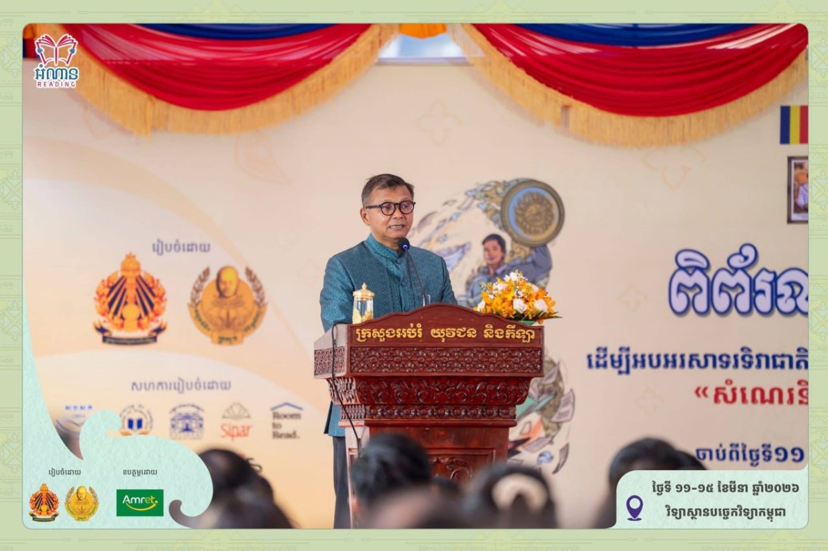 ឯកឧត្តមបណ្ឌិតសភាចារ្យ រដ្ឋមន្រ្ដីក្រសួងអប់រំ មានប្រសាសន៍បញ្ជាក់បែបនេះ ក្នុងពិធីកាត់ខ្សែបូសម្ពោធពិព័រណ៍សៀវភៅ ដើម្បីអបអរសាទរ ទិវាជាតិអំណានលើកទី១១ ដែលបានរៀបចំឡើង ដើម្បីអបអរសាទរទិវាជាតិអំណានលើកទី១១ ក្រោមប្រធានបទ «សំណេរ និងអំណានក្នុងបរិបទថ្មី» និងមានការចូលរួមពីសំណាក ឯកឧត្តម លោកជំទាវ ថ្នាក់ដឹកនាំក្រសួងអប់រំ យុវជន និងកីឡា តំណាងក្រសួង ស្ថាប័នពាក់ព័ន្ធ ដៃគូអភិវឌ្ឍជាតិ និងអន្តរជាតិ អ្នកឧបត្ថម្ភ លោក លោកស្រី ថ្នាក់ដឹកនាំអង្គភាពនានា បុគ្គលិកអប់រំ ក្រុមកាងារស្ម័គ្រចិត្ត និងសាធារណជន ១១ មីនា ២០២៦ នៅវិទ្យាស្ថានបច្ចេកវិទ្យាកម្ពុជា រាជធានីភ្នំពេញ។