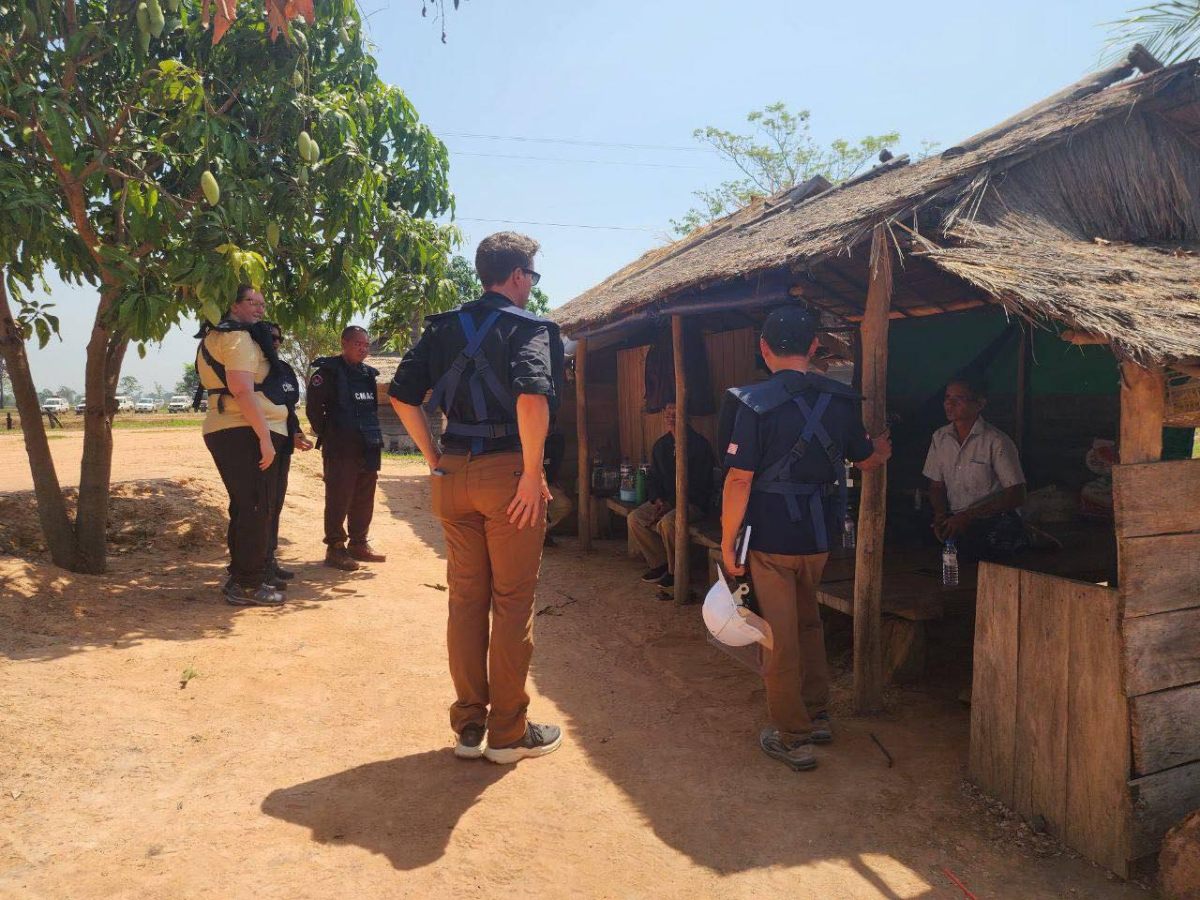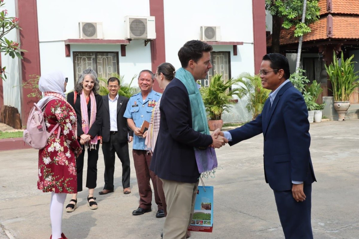 គណៈប្រតិភូសហរដ្ឋអាមេរិក ដឹកនាំដោយលោក Mr. Ethan Rinks ប្រធានគម្រោងកម្មវិធីកាត់បន្ថយអាវុធនៃក្រសួងការបរទេសសហរដ្ឋអាមេរិក លោកស្រី Ms. Jill Larson មន្ត្រីទទួលន្ទុកត្រួតពិនិត្យជំនួយនៃក្រសួងការបរទេស និងលោកស្រី Ms. Homa Hassan មន្ត្រីពិនិត្យវាយតម្លៃគម្រោងជំនួយកាត់បន្ថយសព្វាវុធនៃវិមានប្រធានាធិបតី ព្រមទាំងអបដំណើរដោយលោកស្រី Kelly Saltzman មន្ត្រីស្ថានទូតអាមេរិកប្រចាំកម្ពុជា។