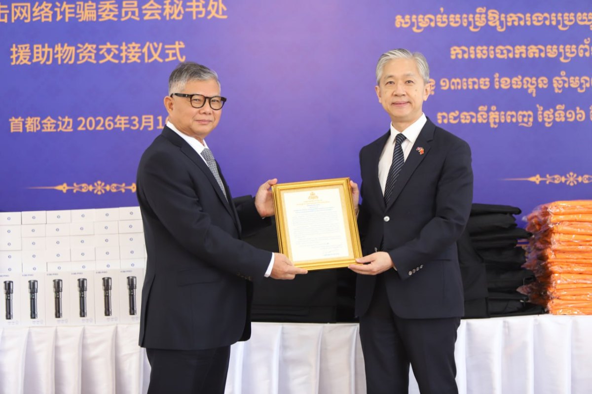 ភ្នំពេញ៖ លេខាធិការដ្ឋានគណៈកម្មការចំពោះកិច្ចប្រយុទ្ធប្រឆាំងការឆបោកតាមប្រព័ន្ធបច្ចេកវិទ្យាហៅកាត់ថា គ.ប.ឆ.ប. នាព្រឹកថ្ងៃទី១៦ ខែមីនា ឆ្នាំ២០២៦ បានរៀបចំពិធីប្រគល់-ទទួលសម្ភារៈបច្ចេកទេស ដែលផ្តល់ជូនដោយក្រសួងសន្តិសុខសាធារណៈនៃសាធារណរដ្ឋប្រជាមានិតចិន តាមរយៈស្ថានទូតចិនប្រចាំនៅកម្ពុជា សម្រាប់រួមចំណែកគាំទ្រដល់ប្រតិបត្តិការបង្ក្រាបបទល្មើសឆបោកតាមប្រព័ន្ធបច្ចេកវិទ្យា Online Scams។