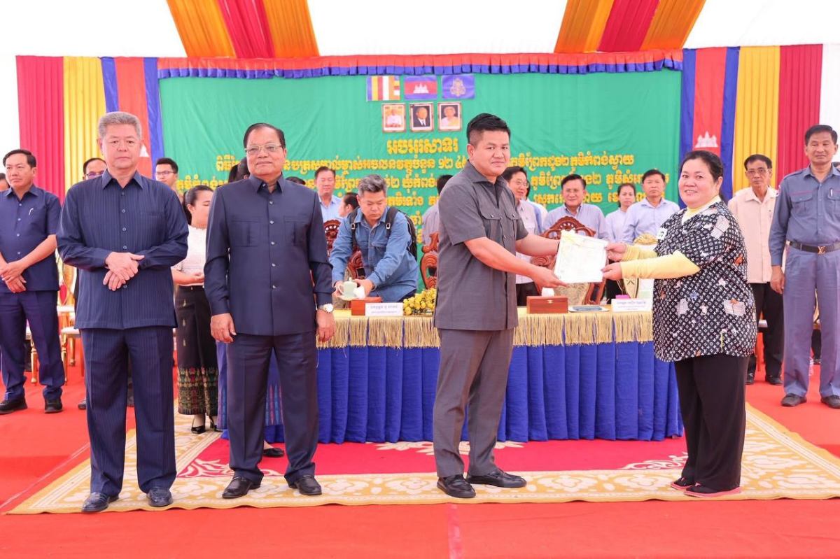 ឯកឧត្តមអភិបាលខេត្ត ក៏បានផ្ដាំផ្ញើដល់បងប្អូនប្រជាពលរដ្ឋ នៅពេលទទួលបានបណ្ណហើយ សូមគិតគូទុកដាក់ថែរក្សាឱ្យបានល្អ ពីព្រោះបណ្ណកម្មសិទ្ធដីធ្លី គឺពិតជាមានសារៈសំខាន់ និងមានតម្លៃណាស់ ក្នុងការសម្គាល់សិទ្ធិកាន់កាប់ ការទិញលក់ បញ្ចាំដីធ្លីរបស់ខ្លួនស្របតាមច្បាប់ ធ្វើឱ្យដីមានសុវត្ថិភាព ទទួលស្គាល់ដោយអាជ្ញាធរ ជៀសផុតពីការរំលោភបំពាន កាត់បន្ថយជម្លោះ ស្របទៅតាមគោលនយោបាយរបស់រាជរដ្ឋាភិបាល ក្រោមការដឹកនាំរបស់សម្តេចធិបតី ហ៊ុន ម៉ាណែត ជានាយករដ្ឋមន្រ្តី នៃព្រះរាជាណាចក្រកម្ពុជា ដែលបាន និងកំពុងអនុវត្តយ៉ាងសកម្មលើគោលនយោបាយដីធ្លី ជូនដល់ប្រជាពលរដ្ឋ ដើម្បីផលប្រយោជន៍របស់ប្រជាពលរដ្ឋយ៉ាងពិតប្រាកដ ធ្វើឱ្យដីធ្លីមានសុវត្ថិភាព និងកាត់បន្ថយវិវាទដីធ្លី។