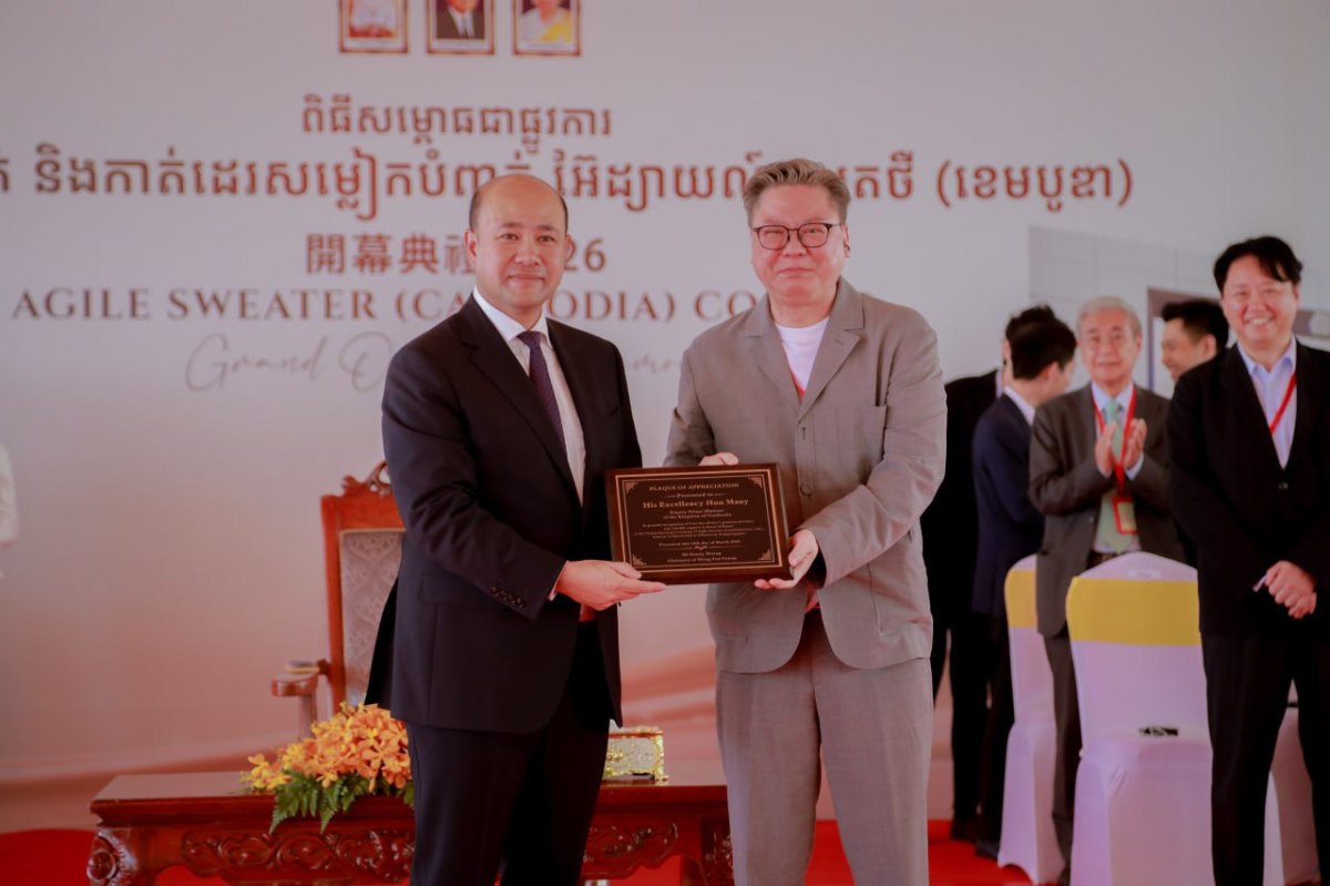 កំពង់ស្ពឺ៖ ឯកឧត្តម ឧបនាយករដ្ឋមន្ត្រី ហ៊ុន ម៉ានី រដ្ឋមន្ដ្រីក្រសួងមុខងារសាធារណៈ និងជាប្រធានក្រុមការងារគណបក្សចុះមូលដ្ឋានខេត្តកំពង់ស្ពឺ នៅព្រឹកថ្ងៃទី១៨ ខែមីនា ឆ្នាំ ២០២៦នេះ បានអញ្ជើញជាអធិបតី សម្ពោធជាផ្លូវការរោងចក្រចាក់ និងកាត់ដេរសម្លៀកបំពាក់អ៊ែដ្យាយល៍ ស្វេតថឺ(ខេមបូឌា) Agile Sweater(Cambodia) នៅភូមិបុរីកម្មករ សង្កាត់ច្បារមន ក្រុងច្បារមន ខេត្តកំពង់ស្ពឺ។