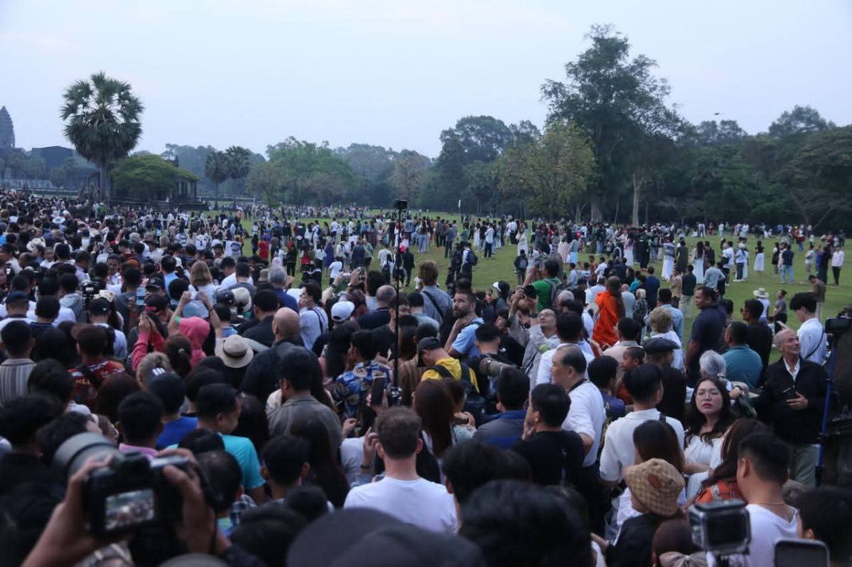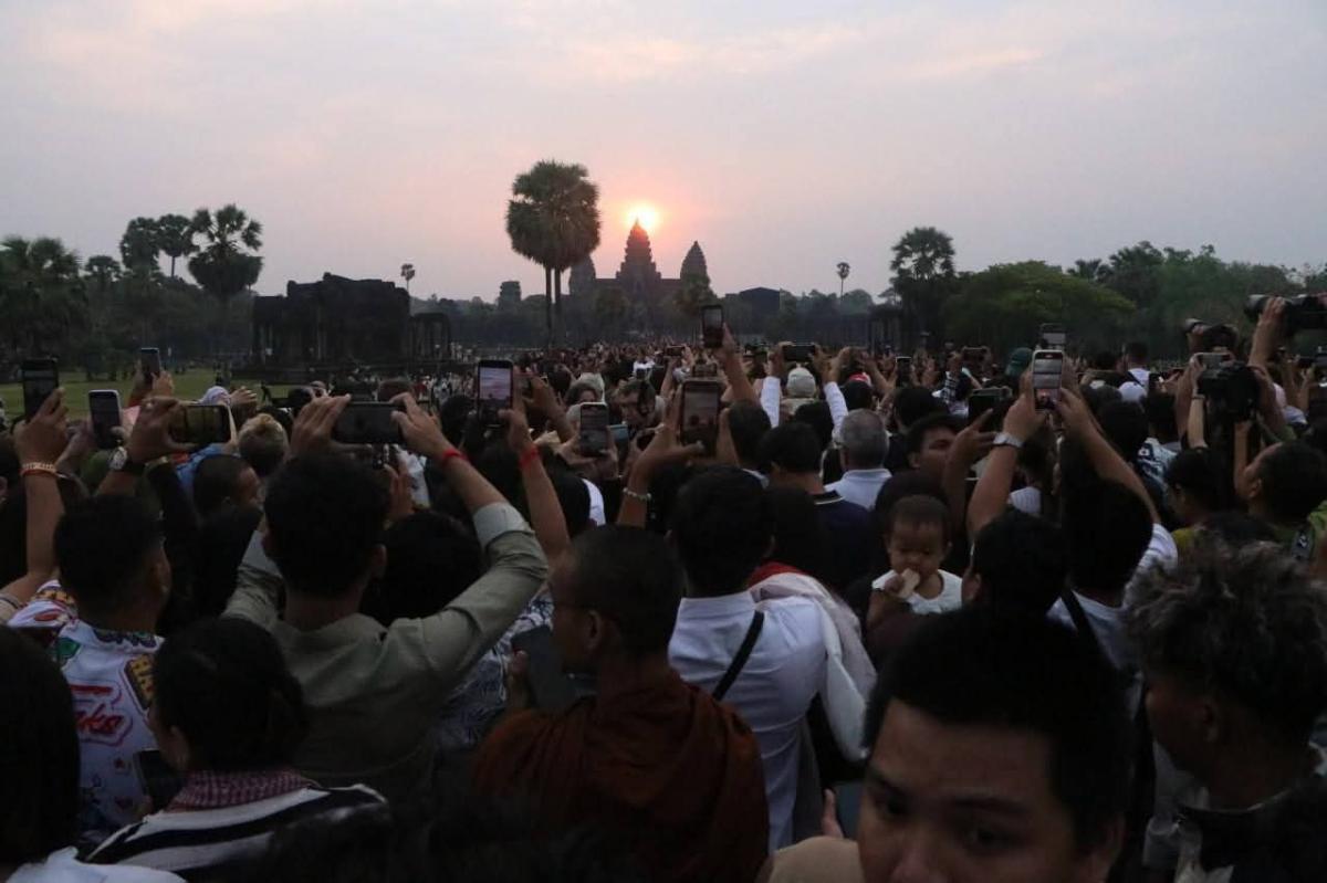 អាជ្ញាធរជាតិអប្សរា សូមជម្រាបជូន និងស្វាគមន៍យ៉ាងកក់ក្តៅចំពោះភ្ញៀវទេសចរជាតិ និងអន្តរជាតិ ដែលនឹងអញ្ជើញមកទស្សនាព្រឹត្តិការណ៍ដ៏អស្ចារ្យ “ថ្ងៃរះចំកំពូលប្រាង្គកណ្តាលនៃប្រាសាទអង្គរវត្ត” ឬសមរាត្រី (Equinox) ដែលនឹងឈានចូលមកដល់នៅថ្ងៃទី២១ ខែមីនាខាងមុខ។ ប៉ុន្តែភ្ញៀវជាតិ និងអន្តរជាតិអាចអញ្ជើញមកគយគន្ធថ្ងៃរះ នៅអង្គរវត្តដែលមានទិដ្ឋភាពដ៏ត្រចះត្រចង់ ចាប់ពីថ្ងៃទី១៩ដល់ថ្ងៃទី២៣ ខែមីនា ឆ្នាំ២០២៦។