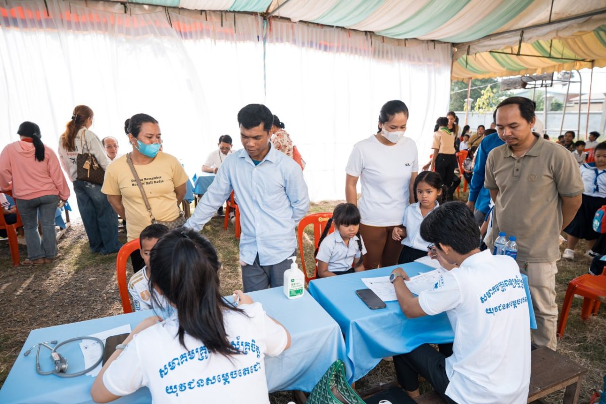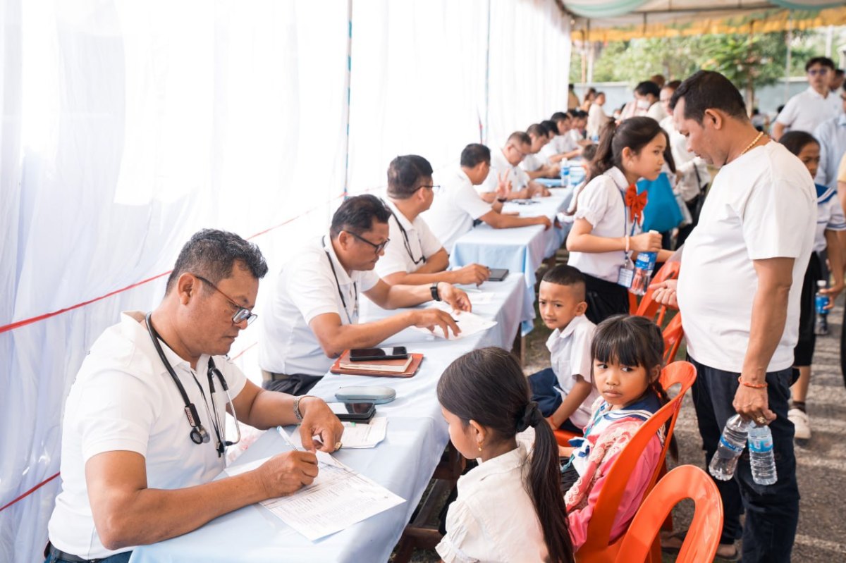 សូមជម្រាបថាសកម្មភាពពិនិត្យ និងព្យាបាលជំងឺទូទៅ និងសុខភាពមាត់ធ្មេញជូន លោកគ្រូ អ្នកគ្រូ សិស្សានុសិស្ស និងអាណាព្យាបាលនៅថ្ងៃនេះ សរុបចំនួន ៣ ៣៩០នាក់ ក្រោមជំនួយឧបត្ថមដោយផ្ទាល់ និងទាំងស្រុងពី សម្តេចធិបតី និងលោកជំទាវបណ្ឌិត។ ក្នុងថ្ងៃនេះដែរក៏មានការអប់រំ និងបណ្ដុះបណ្ដាលអំពីការថែទាំសុខភាពបឋម ដល់លោកគ្រូ អ្នកគ្រូ ចំនួន ៥០នាក់ ដេីម្បីយកទៅអប់រំសុខភាពបន្តដល់សិស្សានុសិស្ស៕