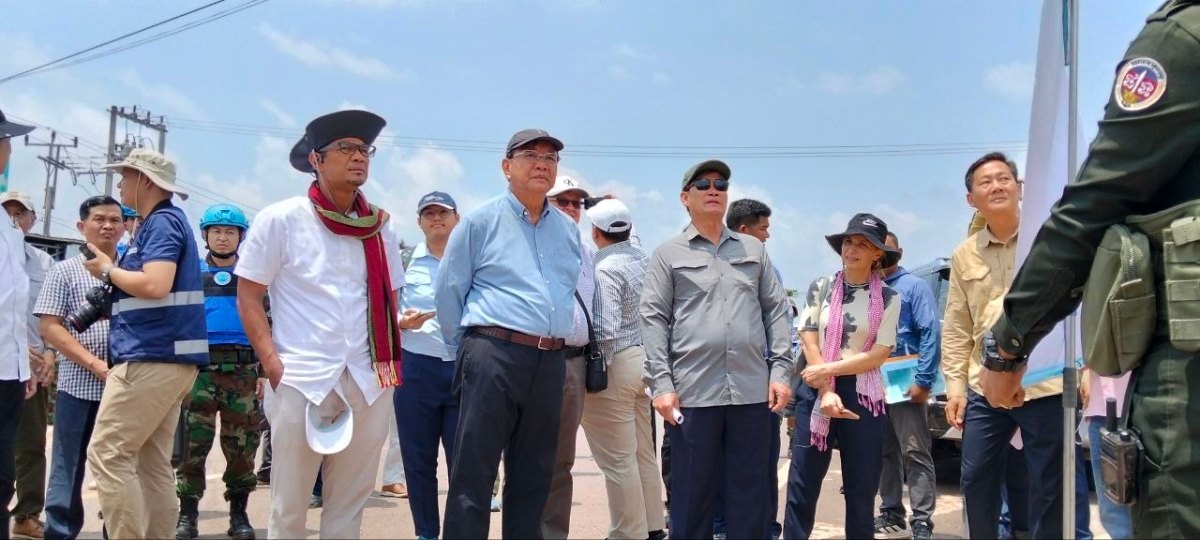 រដ្ឋមន្ត្រីការបរទេសកម្ពុជា ដឹកនាំអង្គទូត និងអង្គការអន្តរជាតិប្រចាំនៅកម្ពុជា ពិនិត្យមើលផ្ទាល់ស្ថានភាពព្រំដែន យោធាថៃដាក់ ទូកុងតឺន័រ និងបន្លាលួស នៅតំបន់ថ្មដា ខេត្តពោធិ៍សាត់