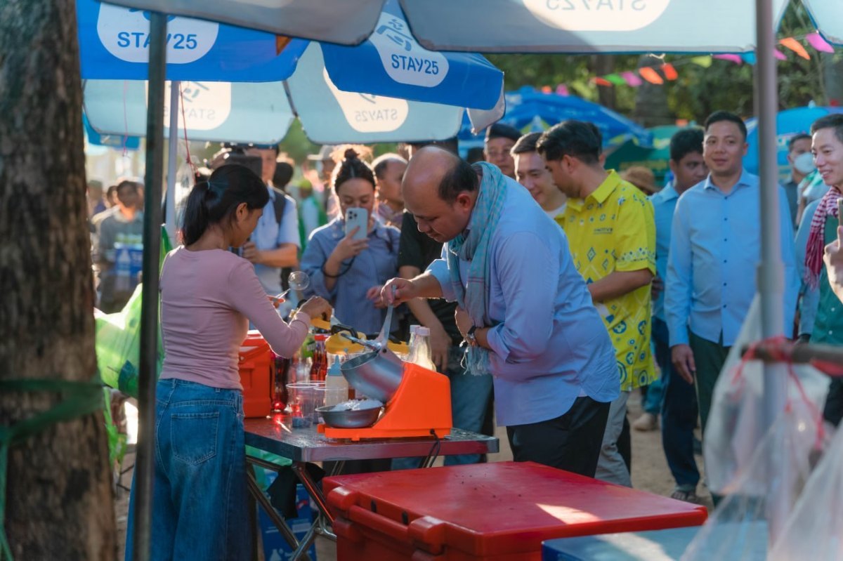 នៅរសៀលថ្ងៃទី២៩ ខែមីនា ឆ្នាំ២០២៦នេះ ឯកឧត្តម ហ៊ុន ម៉ានី ឧបនាយករដ្ឋមន្ត្រី រដ្ឋមន្ត្រីក្រសួងមុខងារសាធារណៈ និងជាប្រធានសហភាពសហព័ន្ធយុវជនកម្ពុជា ឯកឧត្តម ប្រាក់ សោភ័ណ អភិបាលខេត្តសៀមរាប និងប្រតិភូអមដំណើរ បានចុះជួបសំណេះសំណាលសួរសុខទុក្ខ និងបង្កើតឱ្យមានកម្មពិធីជួបជុំអាហារសាមគ្គីឆ្នាំថ្មី ឆ្នាំ២០២៦ ជាមួយបងប្អូនភៀសសឹកកំពុងស្នាក់នៅមណ្ឌលសុវត្ថិភាពវត្តជ្រោយនាងងួន ស្រុកស្រីស្នំ ខេត្តសៀមរាប ក្នុងស្មារតីមហាគ្រួសារខ្មែរ ក្នុងគ្រាលំបាកដោយមិនទុកប្រជាជនខ្មែរណាម្នាក់នៅឯកោនោះឡើយ ។