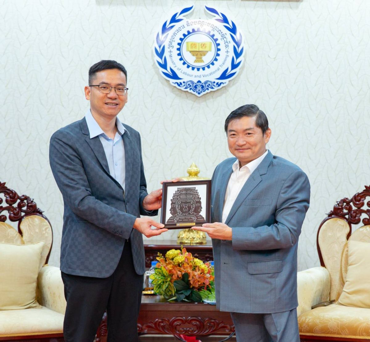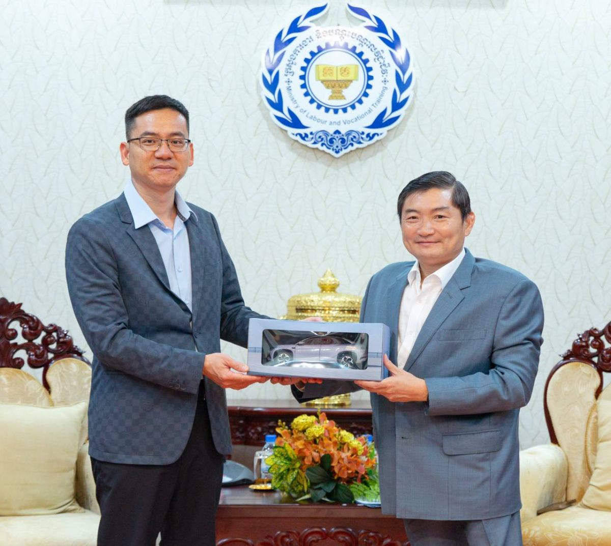 ភ្នំពេញ៖ឯកឧត្តម ហេង សួរ រដ្ឋមន្ត្រីក្រសួងការងារ និងបណ្ដុះបណ្ដាលវិជ្ជាជីវៈបានទទួលជួបសម្ដែងការគួរសម និងពិភាក្សាការងារជាមួយ លោក យៀក ឆឹងហ៊ុយ (Ye Chenghui) ប្រធានផ្នែកលក់នៃក្រុមហ៊ុន BYD (Cambodia) Co., Ltd. និងជានាយកផ្នែកលក់រថយន្តប្រចាំតំបន់អាស៊ីប៉ាស៊ីហ្វិករបស់ក្រុមហ៊ុន BYD ដើម្បីផ្លាស់ប្តូរយោបល់លើការបង្កើតឱកាសពង្រឹងកិច្ចសហប្រតិបត្តិការក្នុងការអភិវឌ្ឍកម្លាំងពលកម្មជំនាញយានយន្តអគ្គិសនី (EV) ក្នុងទិសដៅបំពេញតម្រូវការទីផ្សារ និងចូលរួមថែរក្សាបរិស្ថាននៅកម្ពុជា ជាពិសេសក្នុងពេលមានវិបត្តិប្រេងឥន្ធនៈសកល។