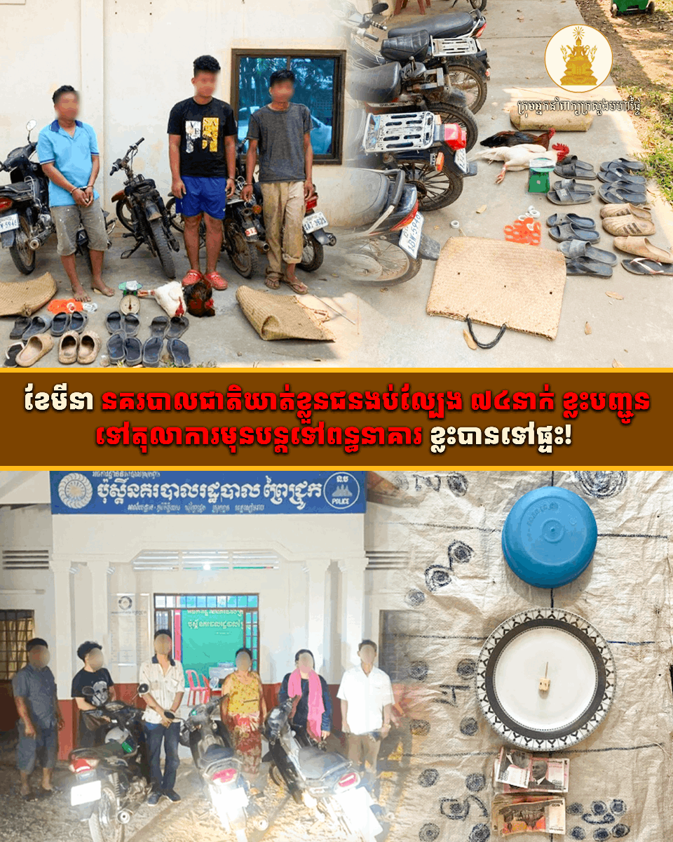 ខែមីនាកន្លងទៅនេះ នគរបាលជាតិឃាត់ខ្លួនជនងប់ល្បែង ៧៤នាក់ ខ្លះបញ្ជូនទៅតុលាការ មុនបន្តទៅពន្ធនាគារ ខ្លះបានទៅផ្ទះវិញ