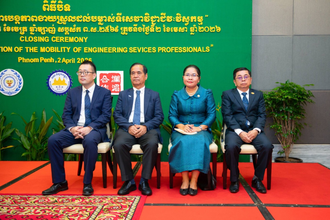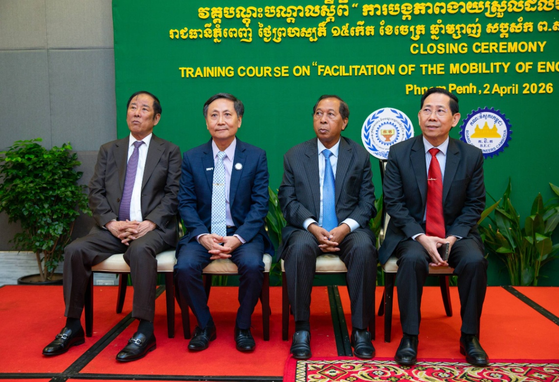 (ភ្នំពេញ)៖ ថ្លែងក្នុងពិធីបិទវគ្គបណ្តុះបណ្តាលស្តីពី “ការបង្កភាពងាយស្រួលដល់បម្លាស់ទីសេវាវិជ្ជាជីវៈវិស្វកម្ម” នារសៀលថ្ងៃទី២ ខែមេសា ឆ្នាំ២០២៦ នៅសណ្ឋាគារកាំបូឌីយ៉ាណា ឯកឧត្តម ហេង សួរ រដ្ឋមន្ត្រីក្រសួងការងារ និងបណ្តុះបណ្តាលវិជ្ជាជីវៈ និងជាប្រធានក្រុមប្រឹក្សាគណៈវិស្វករកម្ពុជា បានលើកឡើងពីសារៈសំខាន់នៃការពង្រឹងសមត្ថភាពវិស្វករ និងកិច្ចសហប្រតិបត្តិការតំបន់ ដែលមិនត្រឹមតែជាការផ្លាស់ប្តូរបច្ចេកទេសប៉ុណ្ណោះទេ ប៉ុន្តែថែមទាំងជាឱកាសដ៏មានតម្លៃក្នុងការសិក្សាវិធីសាស្ត្រថ្មីៗក្នុងទិសដៅអភិវឌ្ឍន៍វិស័យសំណង់នៅអាស៊ាន។