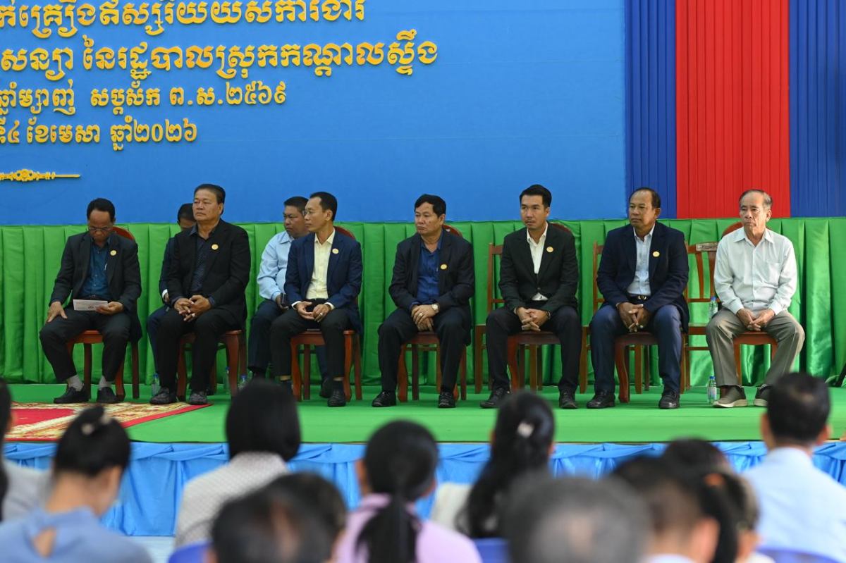 (កណ្ដាល)៖ នៅព្រឹកថ្ងៃសៅរ៍ ទី៤ ខែមេសា ឆ្នាំ២០២៦ ឯកឧត្តមលោកអ្នកឧកញ៉ា បណ្ឌិត ទ្រី ភាព អនុប្រធានក្រុមការងាររាជរដ្ឋាភិបាលចុះមូលដ្ឋានស្រុកកណ្ដាលស្ទឹង តំណាងដ៏ខ្ពង់ខ្ពស់ ឯកឧត្តម នាយឧត្តមសេនីយ៍ កិត្តិសង្គហបណ្ឌិត ហ៊ីង ប៊ុនហៀង បានអញ្ជើញសំណេះសំណាល និងបំពាក់់គ្រឿងបំពាក់គ្រឿងឥស្សរិយយសជូនមន្រ្តីរាជការ និងមន្ត្រីជាប់កិច្ចសន្យានៃរដ្ឋបាលស្រុកកណ្ដាលស្ទឹង ខេត្តកណ្ដាល ដែលមានសមាសភាពអ្នកអញ្ជើញចូលរួមប្រមាណ ៣០០នាក់។