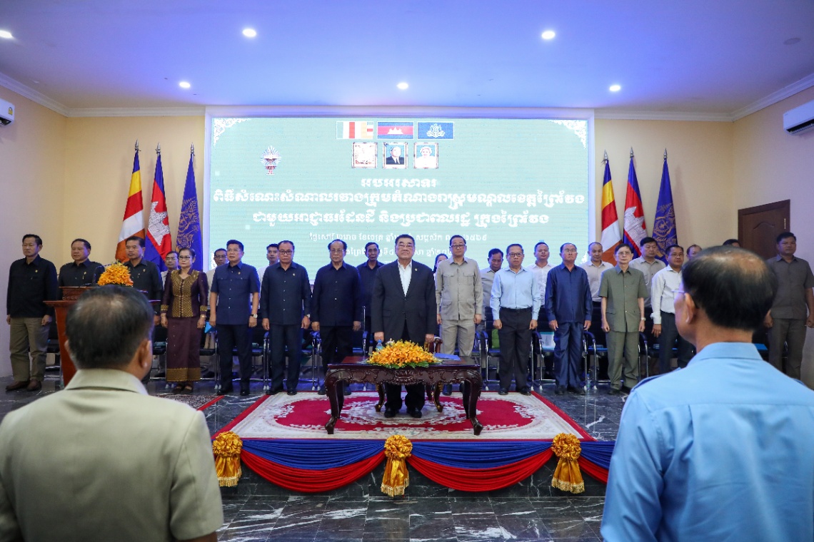 ខេត្តព្រៃវែង៖ ឯកឧត្តមកិត្តិសេដ្ឋាបណ្ឌិត ជាម យៀប អនុប្រធានទី១ នៃរដ្ឋសភា បានដឹកនាំក្រុមតំណាងរាស្រ្តមណ្ឌលខេត្តព្រៃវែង នាព្រឹកថ្ងៃទី៤ ខែមេសា ឆ្នាំ២០២៦ បានអញ្ជើញចុះជួបសំណេះសំណាលជាមួយអាជ្ញាធរដែនដី និងប្រជាពលរដ្ឋជាង ៣០០នាក់ ក្នុងខេត្តព្រៃវែង ដោយបានលើកឡើងពន្យល់លម្អិតអំពីបុព្វហេតុនៃការការពារជាតិ និងបូរណភាពទឹកដី។