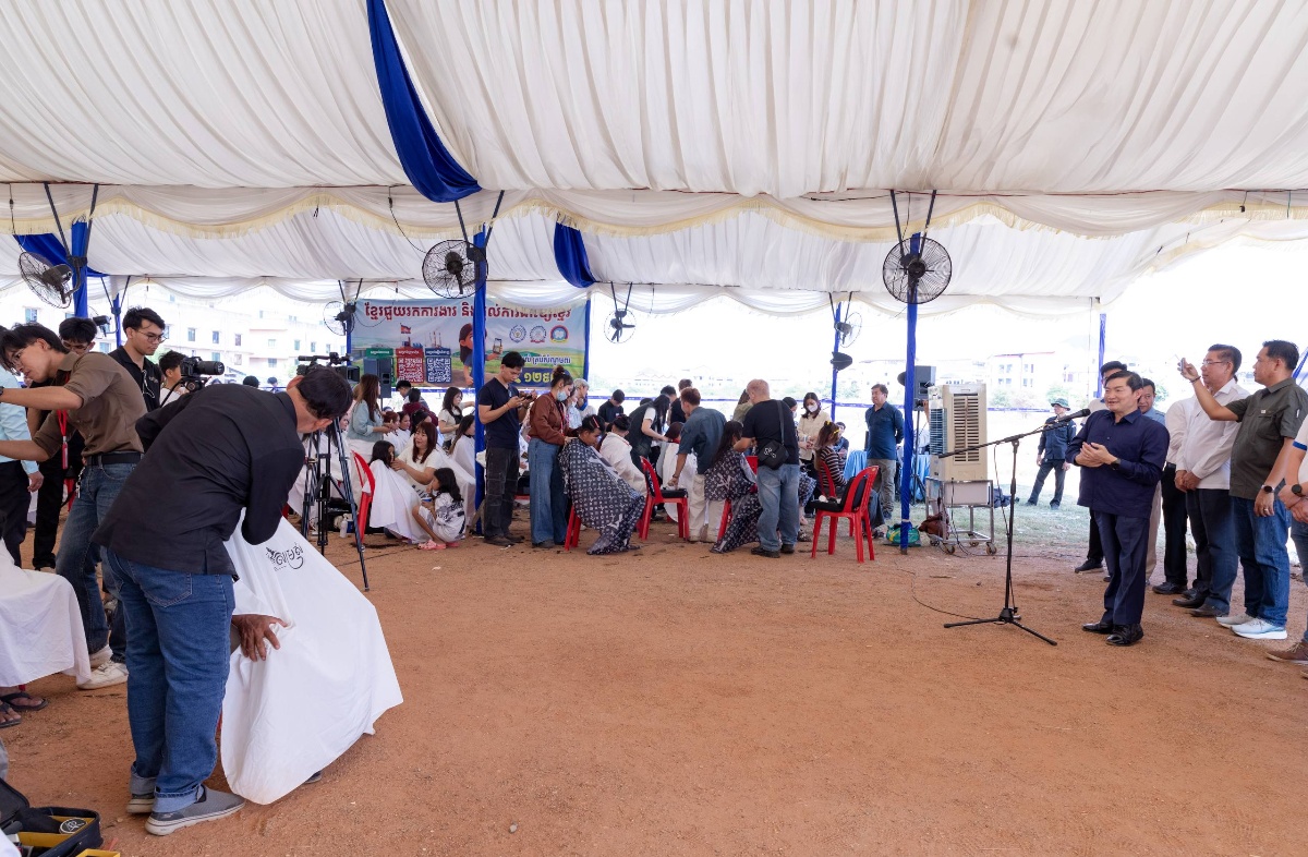 (ភ្នំពេញ)៖ ឯកឧត្តម ហេង សួរ រដ្ឋមន្ត្រីក្រសួងការងារ និងបណ្តុះបណ្តាលវិជ្ជាជីវៈបានអញ្ជើញជាអធិបតីក្នុងវិធី “កាត់សក់បង្កក់សិរី” ដោយឥតគិតថ្លៃជូនដល់បងប្អូនកម្មករ កម្មការិនីជាង ៥០០នាក់ នៅក្នុងភូមិក្បាលដំរី១ សង្កាត់កាកាប២ ខណ្ឌពោធិ៍សែនជ័យ រាជធានីភ្នំពេញ នារសៀលថ្ងៃទី៤ ខែមេសា ឆ្នាំ២០២៦ ក្នុងឱកាសបុណ្យចូលឆ្នាំថ្មីប្រពៃណីជាតិខ្មែរ ឆ្នាំ២០២៦ ដែលក៏ជាពេលដែលថ្នាក់ដឹកនាំក្រសួងការងារ អាចជួបសំណេះសំណាលសួរសុខទុក្ខ ផ្សារភ្ជាប់ទំនាក់ទំនងដ៏ជិតស្និទ្ធជាមួយបងប្អូនកម្មករនិយោជិតផងដែរ។