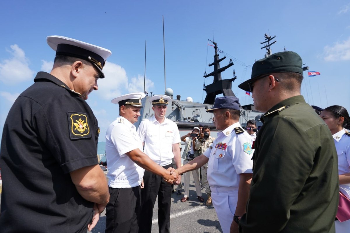 នាវាចំបាំងកងទ័ពជើងទឹកសហព័ន្ធរុស្ស៊ីពីរគ្រឿង (SOVERSHENNYY លេខ 333 និង REZKIY លេខ 343) មាននាវិកសរុបចំនួន ២០០នាក់ បានចូលសំចតនៅកំពង់ផែស្វយ័តអន្ដរជាតិក្រុងព្រះសីហនុ ថ្ងៃទី៦ ខែមេសា ឆ្នាំ២០២៦ ដើម្បីធ្វើទស្សនកិច្ចនៅកម្ពុជា រយៈពេលបីថ្ងៃ (ថ្ងៃទី៦-៨ ខែមេសា ឆ្នាំ២០២៦) ក្នុងការពង្រឹងមិត្ដិភាព ទំនាក់ទំនងការទូត និងកិច្ចសហប្រតិបត្ដិការយោធារវាងកងទ័ពនៃប្រទេសទាំងពីរ ។