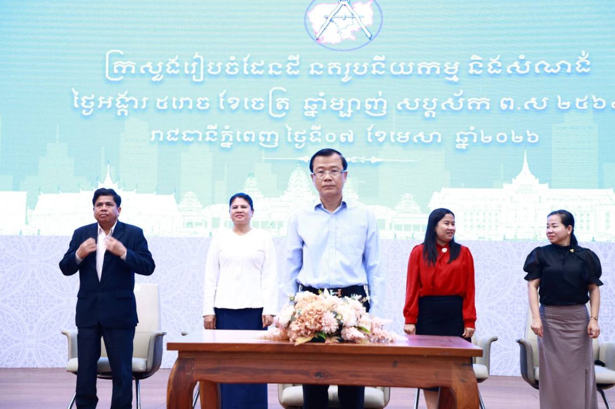 (ភ្នំពេញ)៖ ក្រសួងរៀបចំដែនដី នគរូបនីយកម្ម និងសំណង់ នៅព្រឹកថ្ងៃទី៧ ខែមេសា ឆ្នាំ២០២៦ បានរៀបចំពិធីចែកបណ្ណកម្មសិទ្ធិជូនអតិថិជនបុរី ខេភី ម៉ន ដានី គម្រោងទី២៩ ចំនួន ៩៨៨បណ្ណ និងបុរី PR វីឡា ចំនួន ១៩បណ្ណ ក្រោមអធិបតី លោក ថេង ច័ន្ទសង្វារ រដ្ឋលេខាធិការ តំណាង លោកឧបនាយករដ្ឋមន្ត្រី សាយ សំអាល់ រដ្ឋមន្ត្រីក្រសួងរៀបចំដែនដី នគរូបនីយកម្ម និងសំណង់។