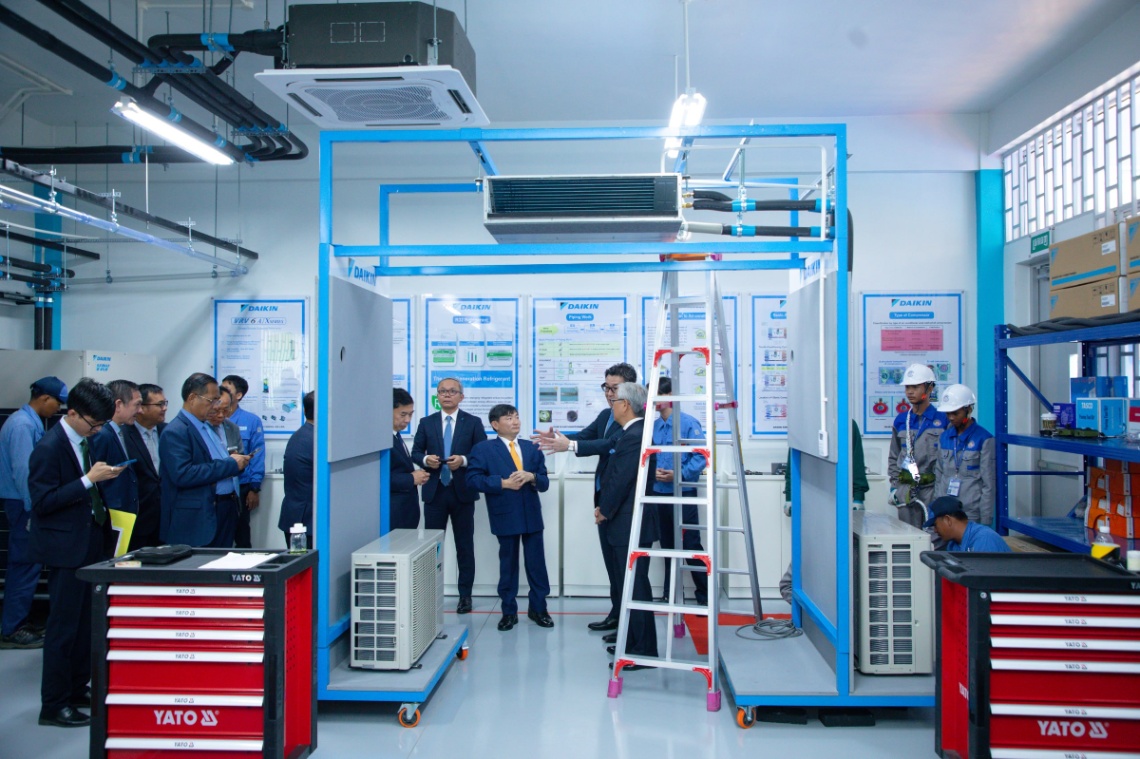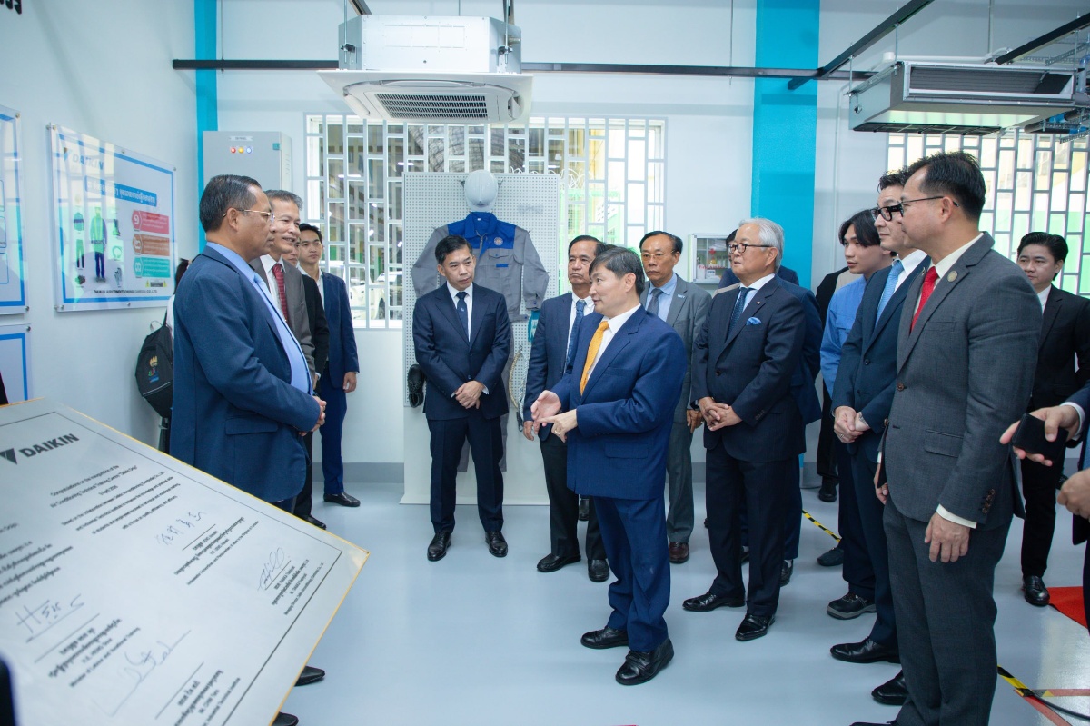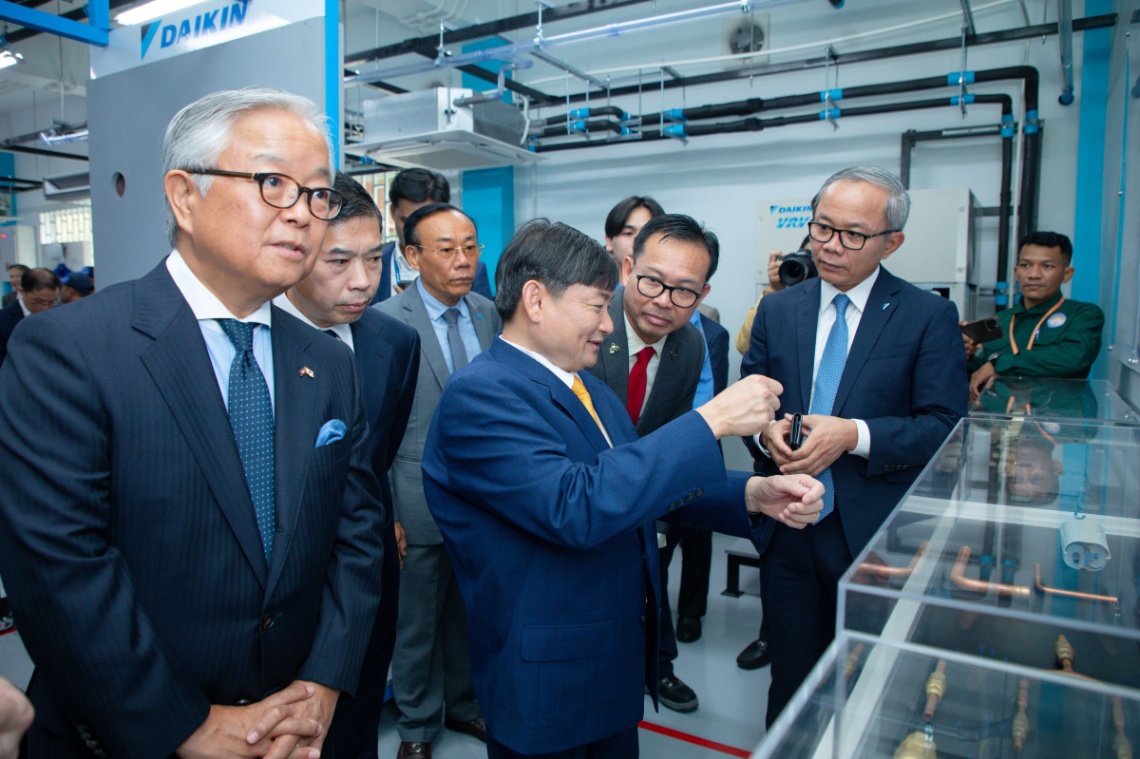 ឯកឧត្ដមរដ្ឋមន្រ្តីក៏បានកោតសរសើរនិងអរគុណចំពោះក្រុមហ៊ុន Daikin Airconditioning(Cambodia)Co.,Ltd និងបានចាត់ទុកការបង្កើតមជ្ឈមណ្ឌលនេះ ជាការចាំបាច់នៃយុទ្ធសាស្ត្រដ៏សំខាន់ និងទាន់ពេលវេលាទៅតាមតម្រូវការទីផ្សារ ហើយស្របជាមួយយុទ្ធសាស្ត្របញ្ចកោណ ដំណាក់កាលទី១ របស់រាជរដ្ឋាភិបាល ផែនការយុទ្ធសាស្ត្រ និងគោលនយោបាយផ្សេងៗរបស់ក្រសួង ជាពិសេសកម្មវិធី TVET ១,៥ លាននាក់ ដោយឯកឧត្តមបានគូសបញ្ជាក់ថា តាមរយៈកិច្ចសហការជាមួយក្រុមហ៊ុន Daikin កម្ពុជាកំពុងបញ្ចូលនវានុវត្តន៍ជប៉ុន និង “ស្តង់ដាមាស” នៃគុណភាពជប៉ុនចូលទៅក្នុងការអភិវឌ្ឍធនធានមនុស្ស ព្រោះក្រុមហ៊ុនមិនត្រឹមតែជំនាញលើម៉ាស៊ីនត្រជាក់តែមួយមុខប៉ុណ្ណោះទេ ប៉ុន្តែក៏ឈានមុខគេលំដាប់ពិភពលោកក្នុងដំណោះស្រាយនិរន្តរភាពបរិស្ថាន ដែលក្នុងនោះប្រព័ន្ធកម្ដៅ ខ្យល់ចេញចូល ម៉ាស៊ីនត្រជាក់ គឺជាផ្នែកមួយនៃបច្ចេកវិទ្យារបស់ខ្លួន។