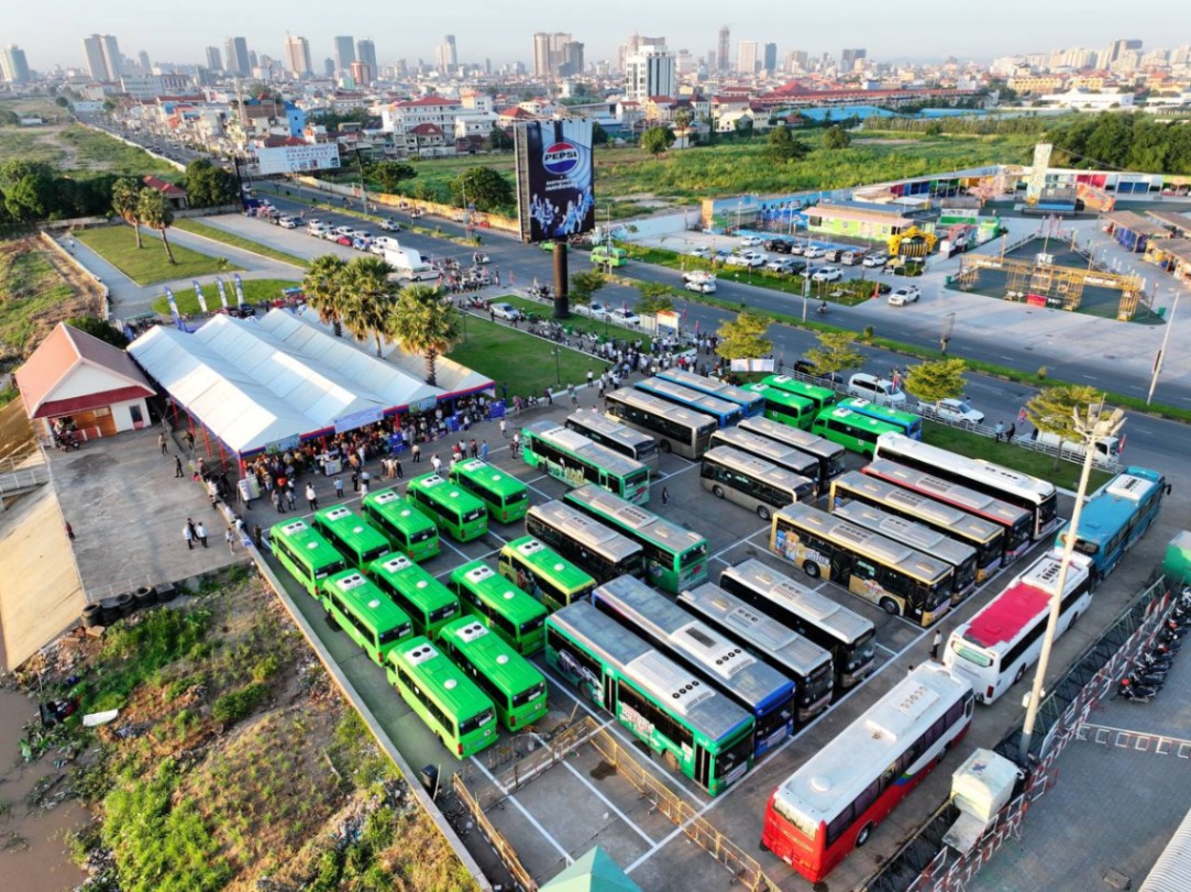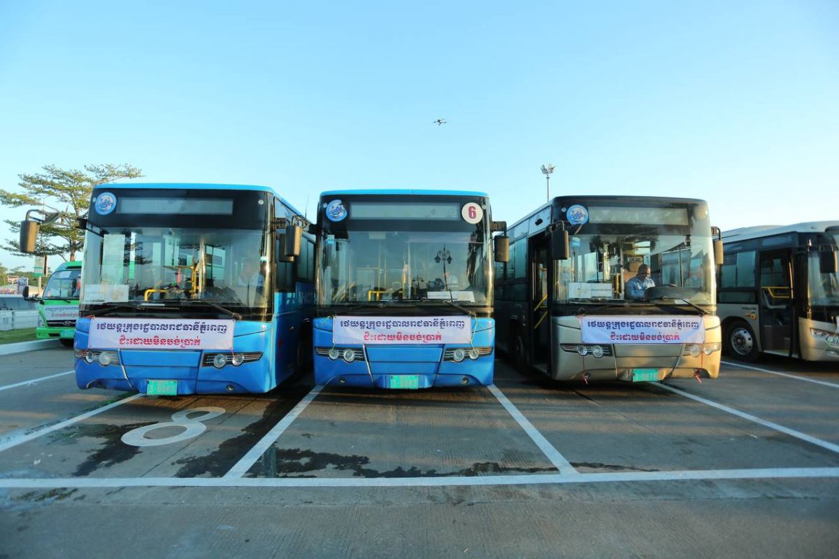 សូមបញ្ជាក់ថា រដ្ឋបាលរាជធានីភ្នំពេញ បានរៀបចំរថយន្តក្រុងសាធារណៈចំនួន៦០០គ្រឿង បម្រើដល់ការដឹកជញ្ចូនឥតគិតថ្លៃនៅទូទាំងប្រទេស ក្នុងរយៈពេល០៦ថ្ងៃ គិតចាប់ពីថ្ងៃទី១២ ដល់ថ្ងៃទី១៧ ខែមេសា ឆ្នាំ២០២៦ ។