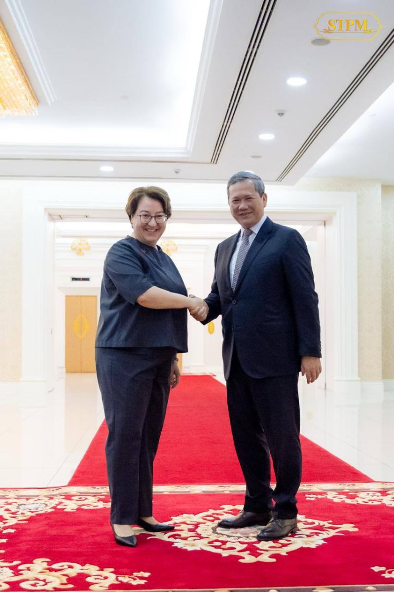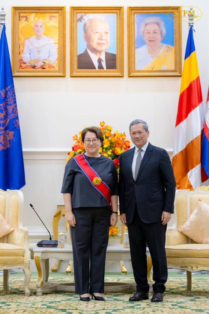 នាព្រឹកថ្ងៃទី១០ ខែមេសា ឆ្នាំ២០២៦, នៅវិមានសន្តិភាព សម្ដេចមហាបវរធិបតី ហ៊ុន ម៉ាណែត នាយករដ្ឋមន្ត្រីនៃព្រះរាជាណាចក្រកម្ពុជា បានអនុញ្ញាតឱ្យ លោកជំទាវ Ülkü Kocaefe ឯកអគ្គរដ្ឋទូតនៃសាធារណរដ្ឋតួកគីយ៉េ ប្រចាំព្រះរាជាណាចក្រកម្ពុជា ចូលជួបសម្ដែងការគួរសម និងជម្រាបលា ក្នុងឱកាសដែលលោកជំទាវត្រូវបញ្ចប់អាណត្តិបេសកកម្មការទូត។