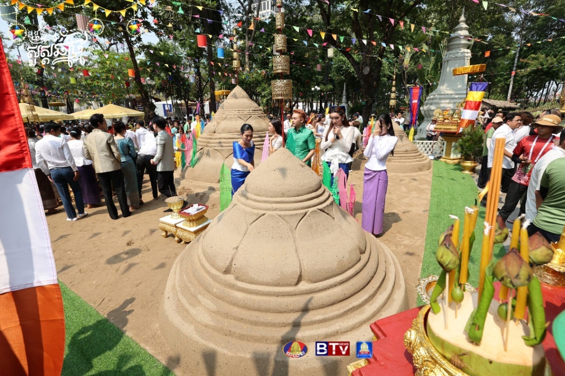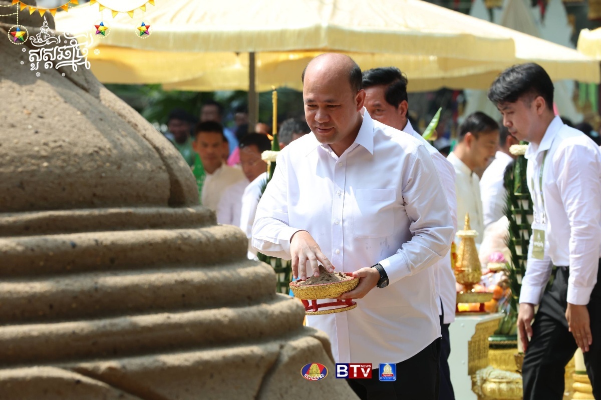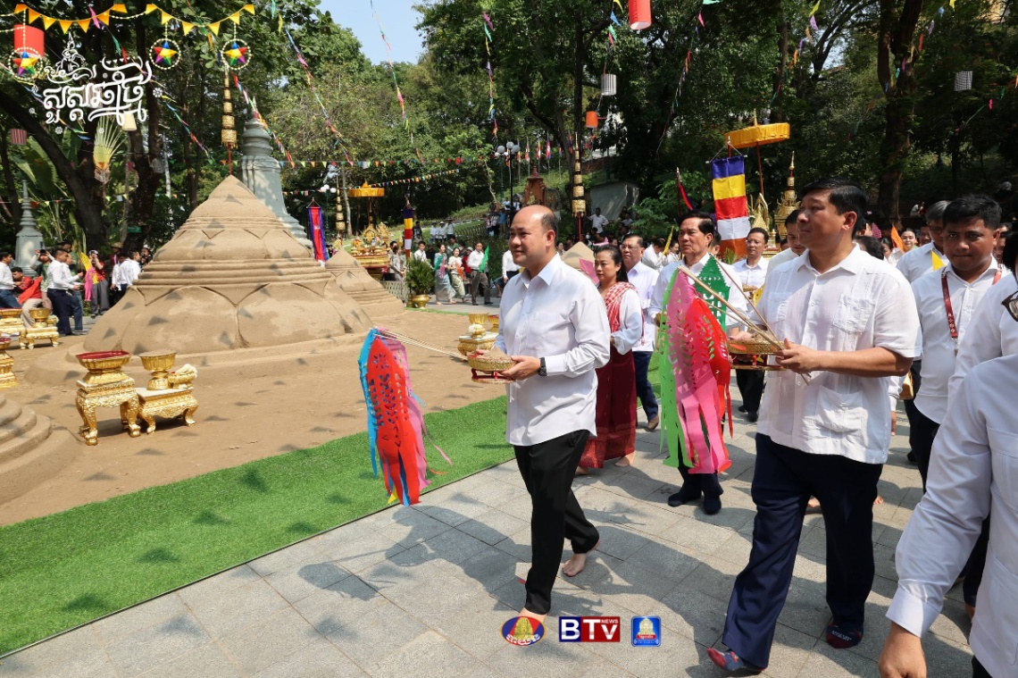 ឯកឧត្តម ឧបនាយករដ្ឋមន្រ្ដីបានថ្លែងថា ក្នុងចំណោមទំនៀមទម្លាប់ជាច្រើន នាឱកាសពិធីបុណ្យឆ្នាំថ្មីប្រពៃណីជាតិខ្មែរ ពិធីពូនភ្នំខ្សាច់ ឬវាលុកចេតិយ គឺជាពិធីសាសនា ដែលប្រជាពលរដ្ឋខ្មែរ និយមប្រារព្ធឡើងនៅតាមវត្តអារាម ដើម្បីឧទ្ទិសថ្វាយព្រះសម្មាសម្ពុទ្ធ និងរំលឹកដល់ព្រះចូឡាមណីចេតិយ។ ការធ្វើពិធីពូនភ្នំខ្សាច់នេះ ក៏ជាការឧទ្ទិសកុសល ជូនដល់ឧបការីជន ទាំងឡាយដែលបានលាចាកលោកផងដែរ។