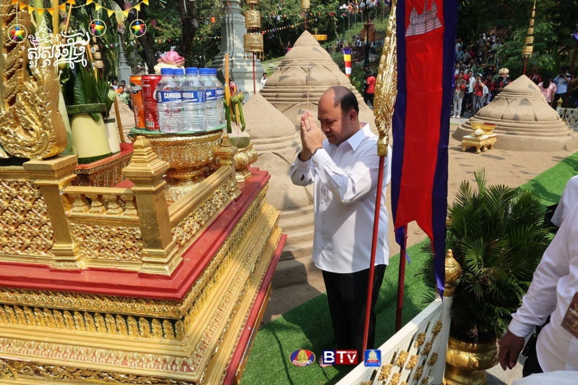 ឯកឧត្តមបានបន្តថា តាមរយៈប្រពៃណីនេះ ពុទ្ធសាសនិកជឿថា គ្រាប់ខ្សាច់នីមួយៗតំណាងឱ្យការលាងជម្រះបាបកម្ម និងរឿងមិនល្អពីឆ្នាំចាស់ ដើម្បីទទួលយកសេចក្តីជ្រះថ្លា និងសិរីសួស្តីក្នុងឆ្នាំថ្មី។ ទន្ទឹមនឹងនេះ ពិធីនេះបាននាំមកការជួបជុំ និងឆ្លុះបញ្ចាំងពីស្មារតីសាមគ្គីភាពរបស់បងប្អូនប្រជាពលរដ្ឋ ក្នុងការជួយគ្នា រួមកម្លាំង ដឹកជញ្ជូន រៀបចំ និងតុបតែងភ្នំខ្សាច់យ៉ាងប្រណិត។