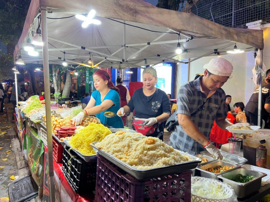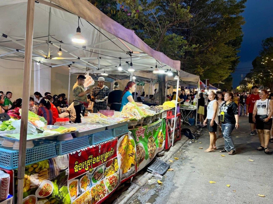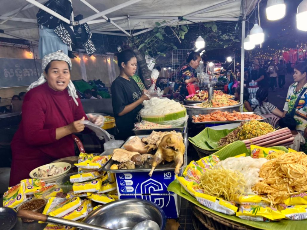 ក្រុមអាជីវករលក់ដូរសេវាម្ហូបអាហារ ភេសជ្ជៈ និងនំចំណីផ្សេងៗ នៅក្នុងថ្ងៃបុណ្យចូលឆ្នាំប្រពៃណីខ្មែរ នគរសង្ក្រាន្ត តាម បណ្តោយសួនច្បារវឌ្ឍនៈ (អតីតសួនទីលានធិបតេយ្យ) នៅរាជធានីភ្នំពេញ លើកលើងនៅល្ងាចថ្ងៃទី១៩ ខែមេសា ឆ្នាំ២០២៦ ព្រឹត្តិ- ការណ៍នគរសង្ក្រាន្តក្នុងឆ្នាំនេះ បានរៀបចំទ្រង់ទ្រាយធំនៅរាជធានីភ្នំពេញ និងមានរៀបចំកម្មវិធីជាច្រើន បានជំរុញឱ្យព្រឹត្តិការណ៍នេះ ប្រព្រឹត្តិទៅដោយភាពអធឹកអធម ដោយបានទាក់ទាញភ្ញៀវជាតិ-អន្តរជាតិមកចូលរួមកម្សាន្ត និងទស្សនានូវកម្មវិធីផ្សេងៗទៀត ជាក់ ស្តែងគិតមកដល់ថ្ងៃបញ្ចប់នៃព្រឹត្តិកាណ៍នគរសង្ក្រាន្តឆ្នាំនេះ រាជធានីភ្នំពេញបានស្រូបយកភ្ញៀវជាតិ-អន្តរជាតិបានយ៉ាងច្រើនកុះករ។