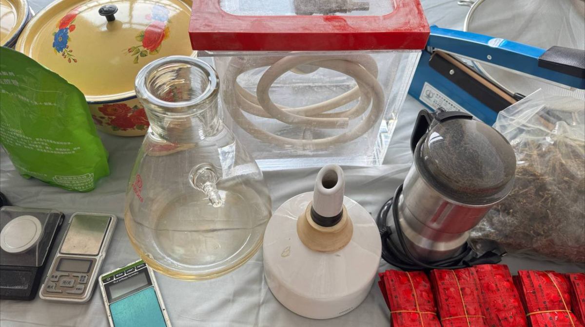 ក្នុងការបង្ក្រាប កម្លាំងសមត្ថកិច្ច ធ្វើការដកហូតវត្ថុតាបពាក់ព័ន្ធរួមមាន ៖ កុំព្យូទ័រយួរដៃ ១៤គ្រឿង , ទូរស័ព្ទដៃ ០៦គ្រឿង និងគ្រឿងញៀនចម្រុះសរុបជាង១០គីឡូក្រាមផងដែរ ។