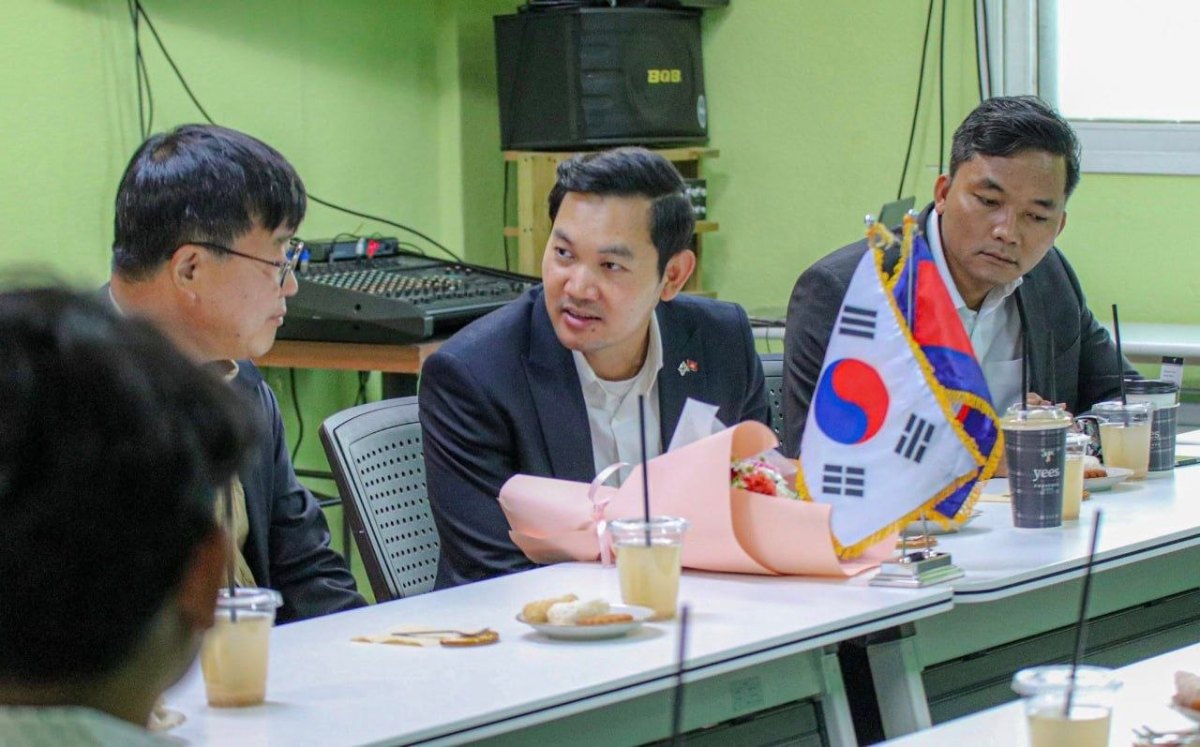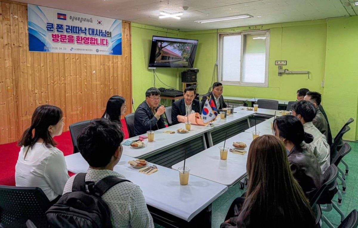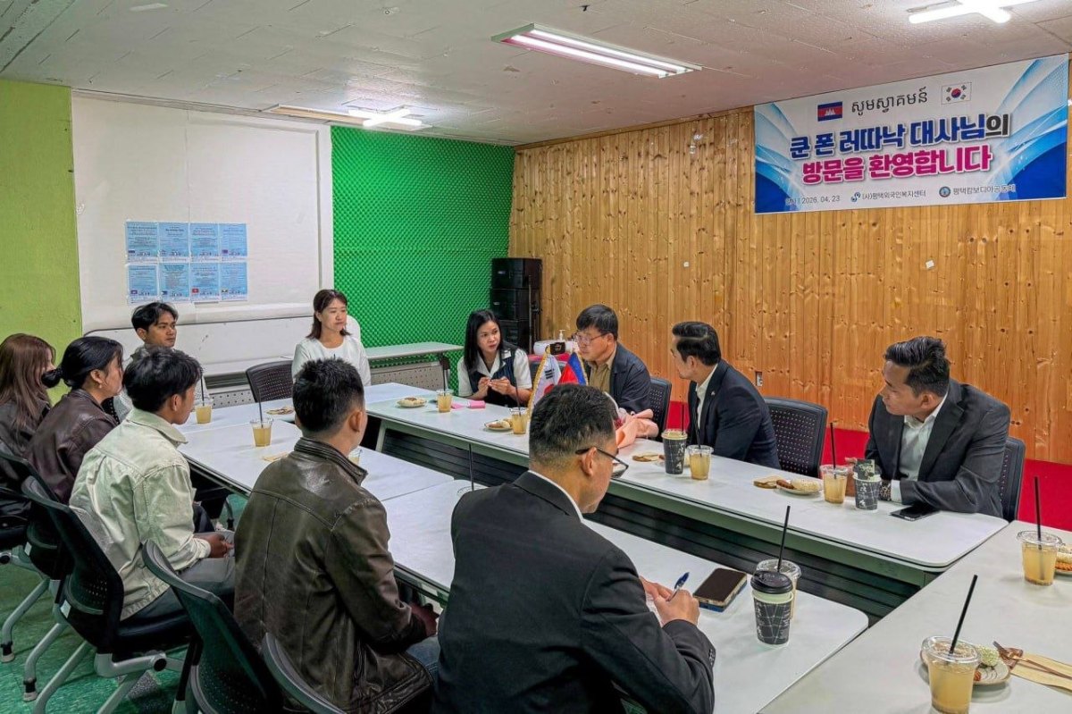 ក្នុងជំនួបសំណេះសំណាល និងពិភាក្សាការងារជាមួយលោក Kim Woo Young ប្រធានមជ្ឈមណ្ឌលគាំពារពលករបរទេស នៅតំបន់ផ្យង់ថេគ ខេត្ត Gyeonggi-do សាធារណរដ្ឋកូរ៉េ នៅថ្ងៃទី២៣ ខែមេសា ឆ្នាំ២០២៦ ឯកឧត្តមឯកអគ្គរាជទូត បានថ្លែងអំណរគុណចំពោះប្រធានមជ្ឈមណ្ឌល ដែលតែងតែជួយយកចិត្តទុកដាក់ ក្នុងការដោះស្រាយបញ្ហាប្រឈមនានារបស់ពលករខ្មែរ និងសហគមន៍ខ្មែរនៅតំបន់ផ្យង់ថេគកន្លងមក ។