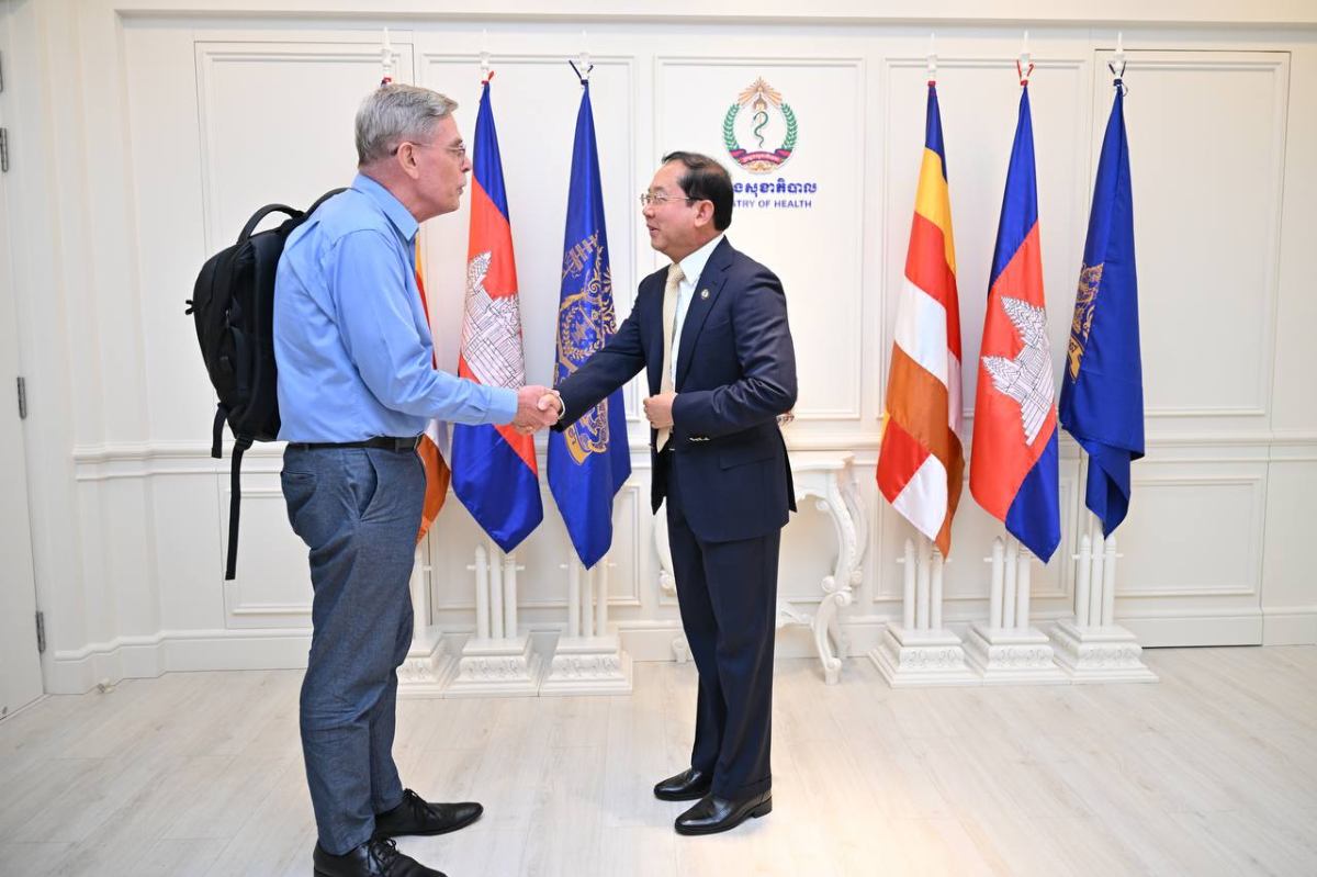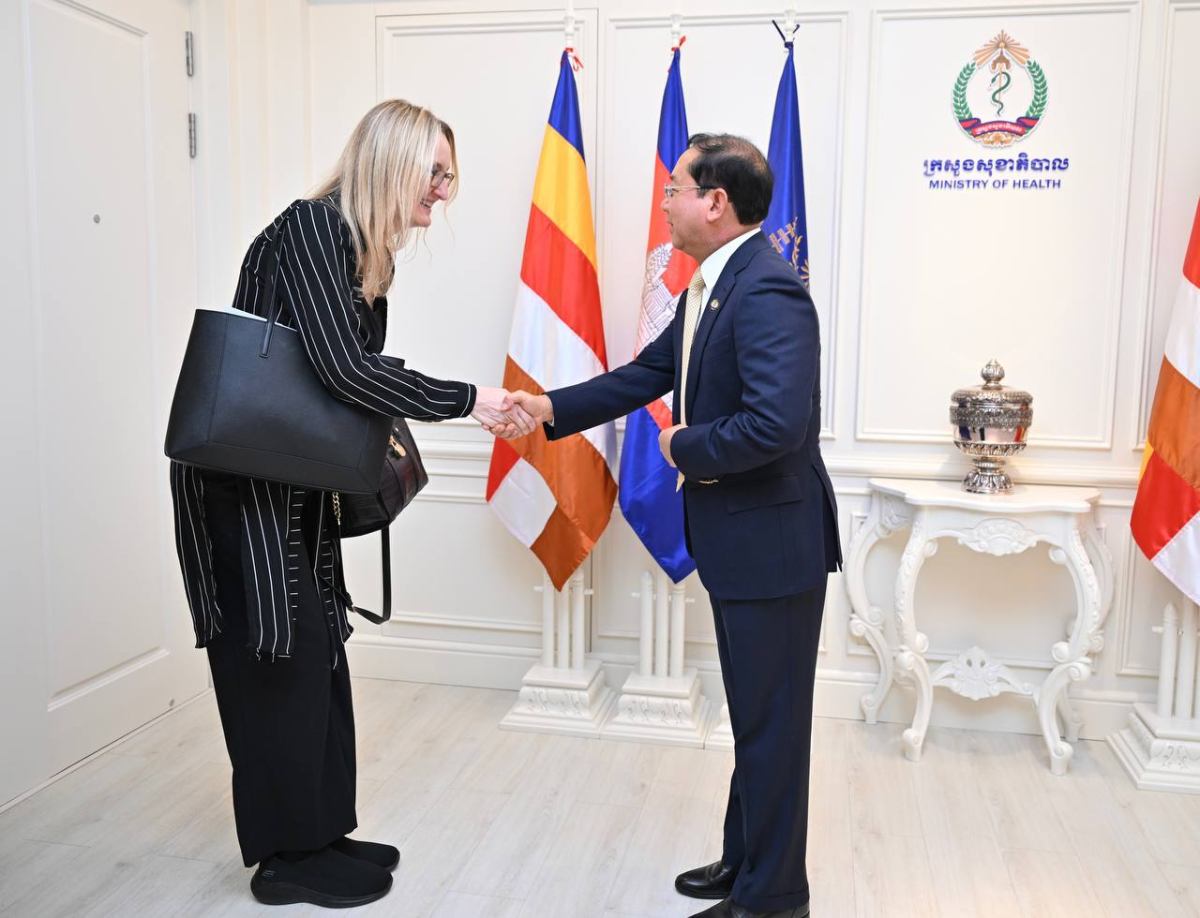 ឯកឧត្តមសាស្ត្រាចារ្យ ឈាង រ៉ា រដ្ឋមន្ត្រីក្រសួងសុខាភិបាល បានអនុញ្ញាតជូនលោកស្រី Sylwia Murray ប្រធានបេសកកម្ម និងក្រុមការងារមូលនិធិសកល(Global Fund Country Team) ចូលជួបសម្តែងការគួរសម និងពិភាក្សាការងារ, នៅរសៀលថ្ងៃទី២២ ខែមេសា ឆ្នាំ២០២៦ នាទីស្តីការក្រសួងសុខាភិបាល។